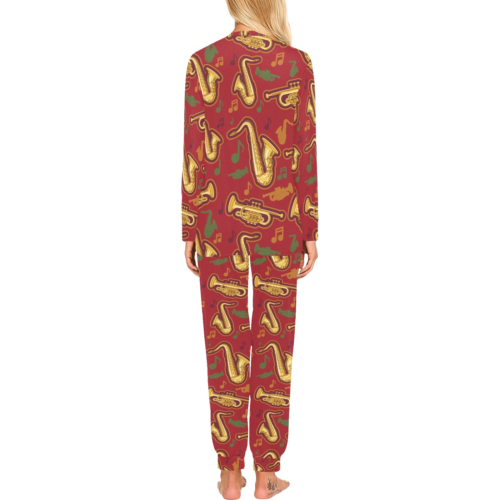 Saxophone cornet pattern red background Women's All Over Print Pajama Set