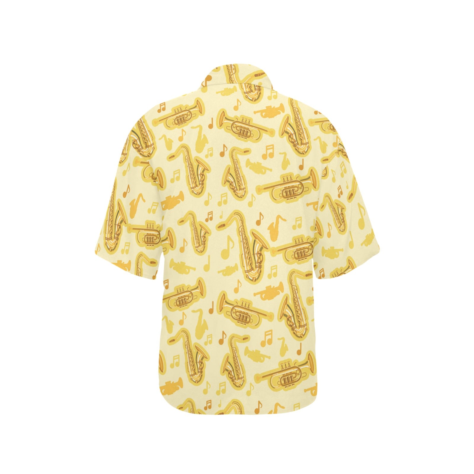 Saxophone cornet pattern yellow background Women's All Over Print Hawaiian Shirt