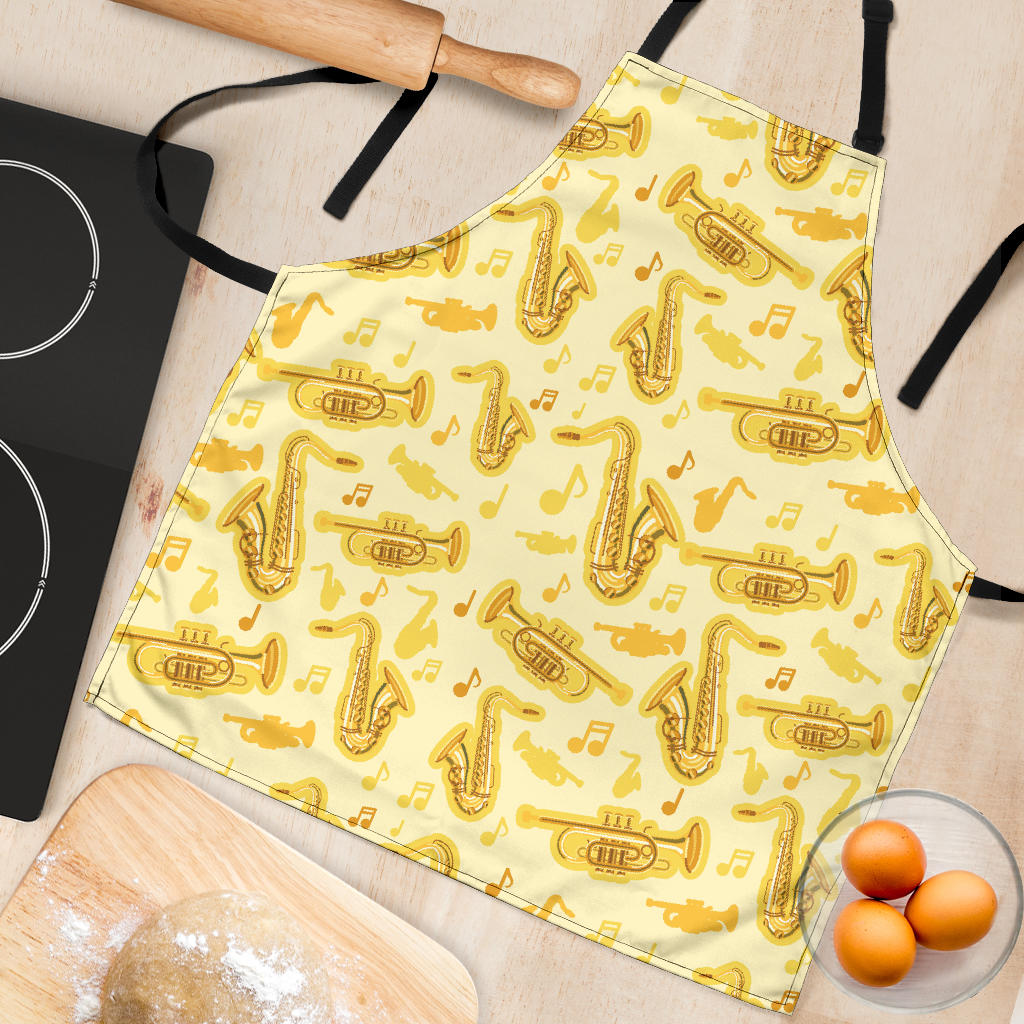 Saxophone Cornet Pattern Yellow Background Adjustable Apron
