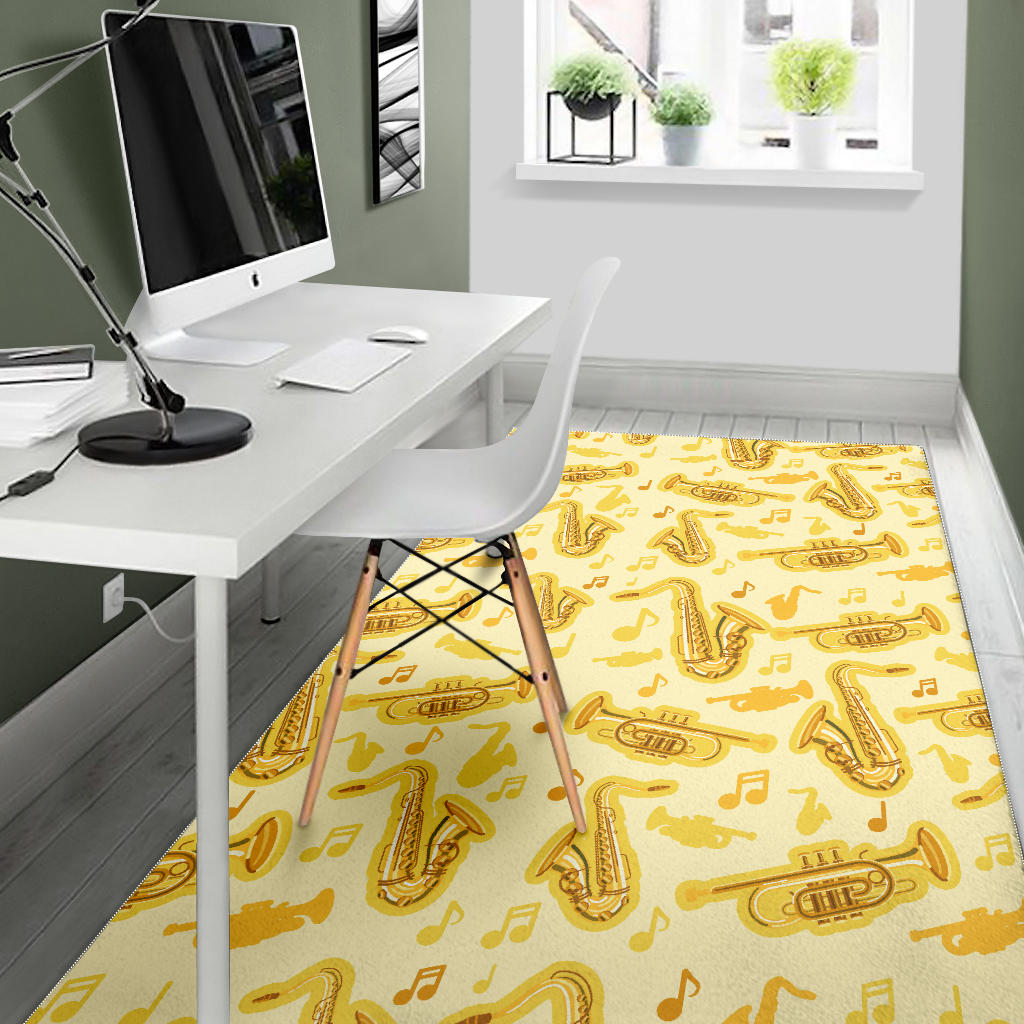 Saxophone cornet pattern yellow background Area Rug is a uniqued design and limited item. It made to order, hand printed, and sewn with love in our factory.