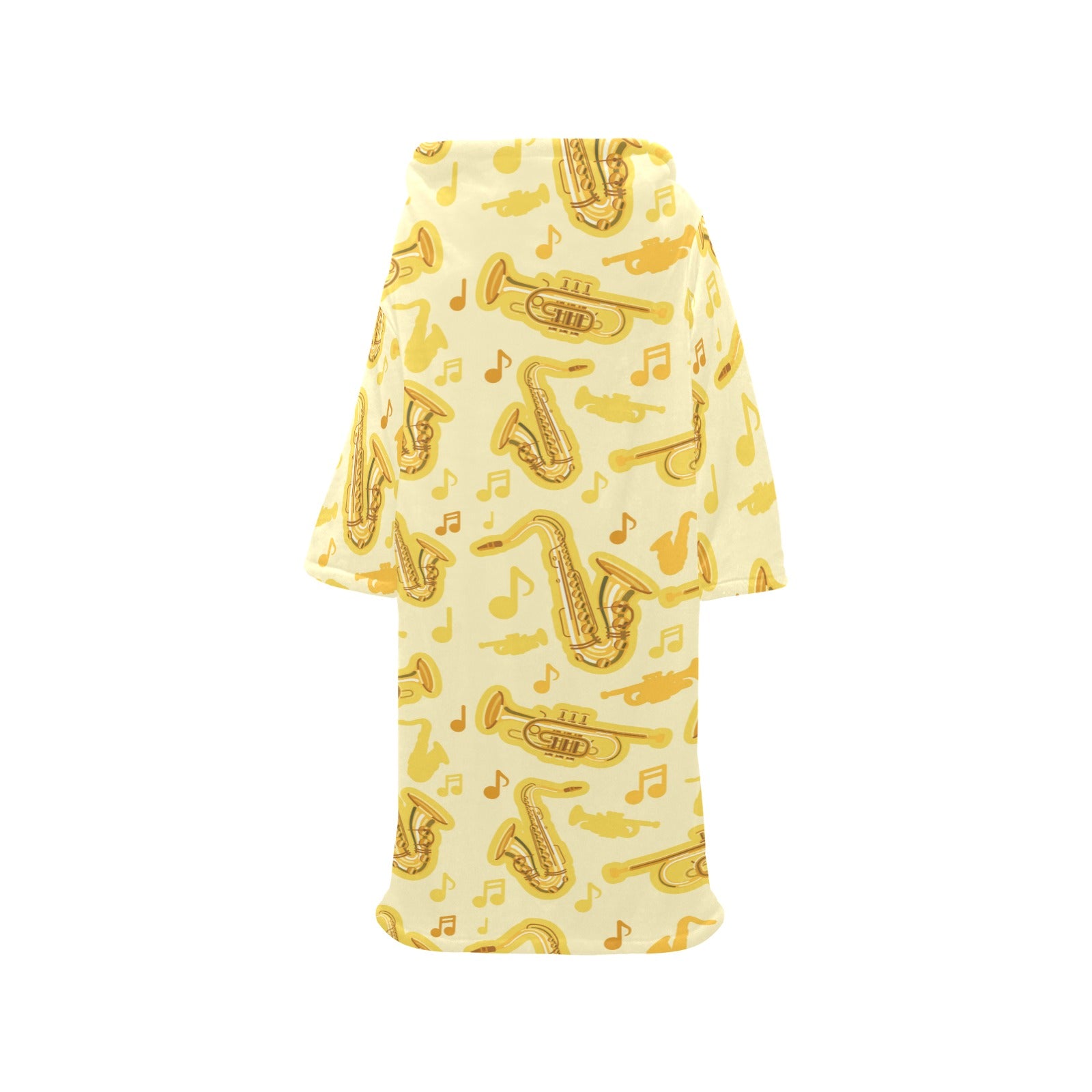 Saxophone cornet pattern yellow background Blanket Robe with Sleeves