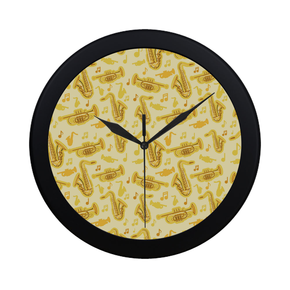 Saxophone cornet pattern yellow background Elegant Black Wall Clock
