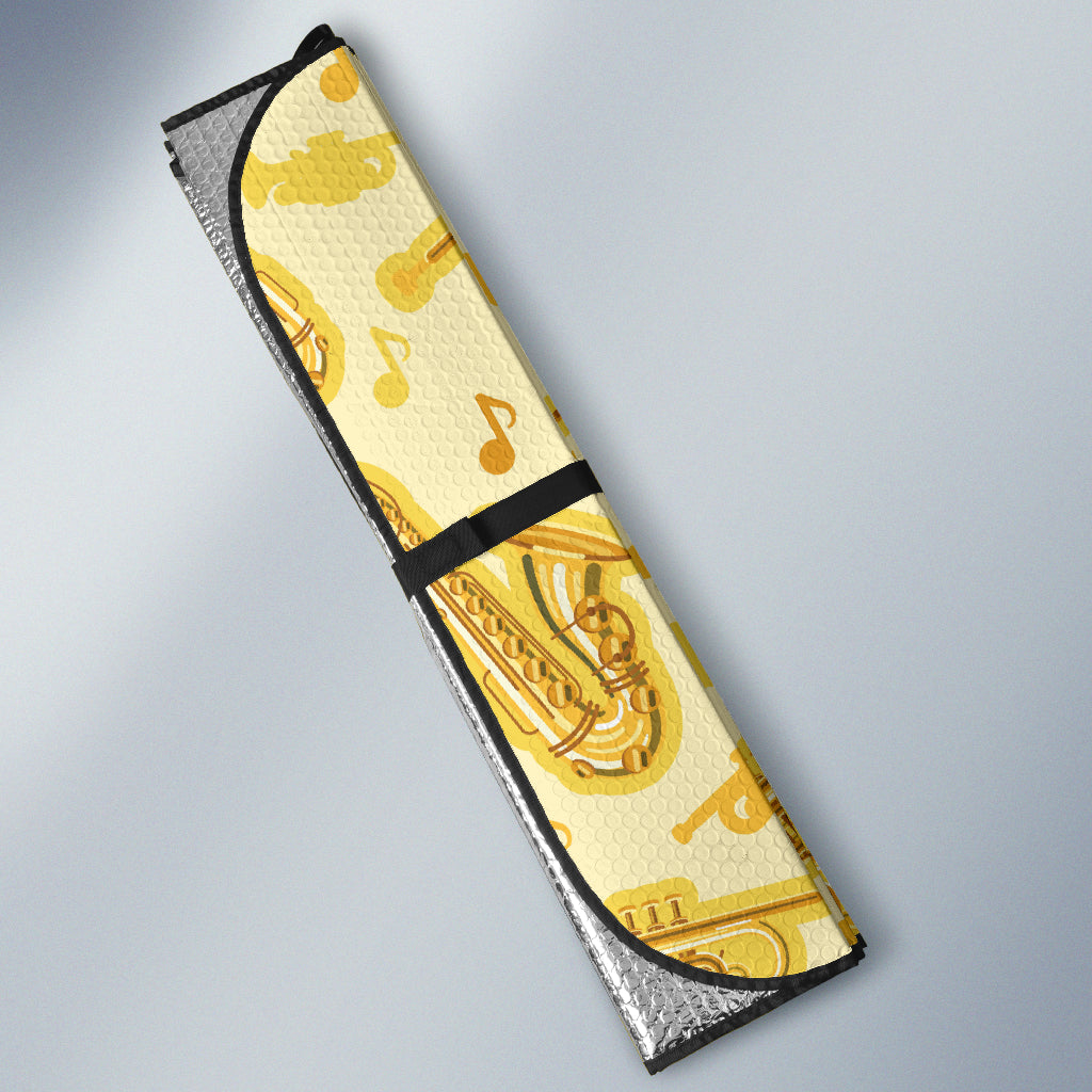 Saxophone Cornet Pattern Yellow Background Car Sun Shade