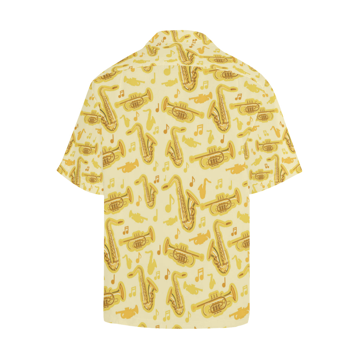Saxophone cornet pattern yellow background Men's All Over Print Hawaiian Shirt is a uniqued design and limited item. It made to order, hand printed, and sewn with love in our factory.