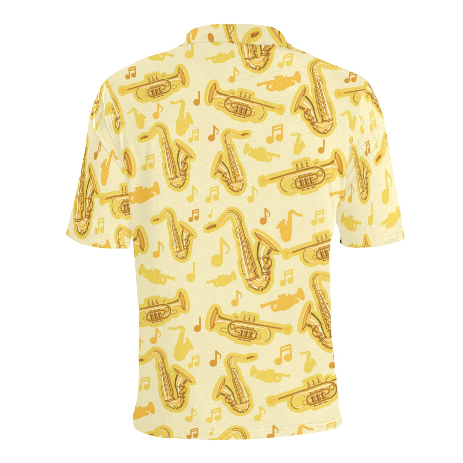 Saxophone cornet pattern yellow background Men's All Over Print Polo Shirt