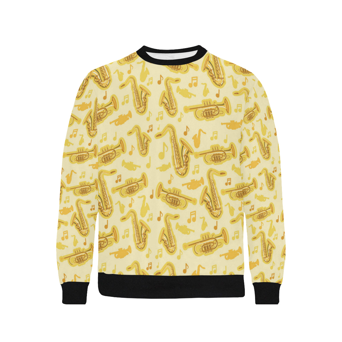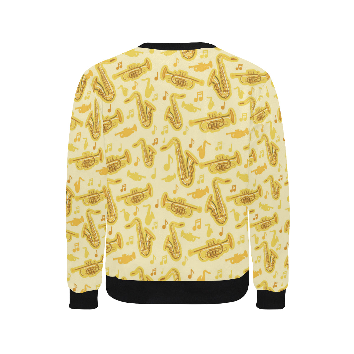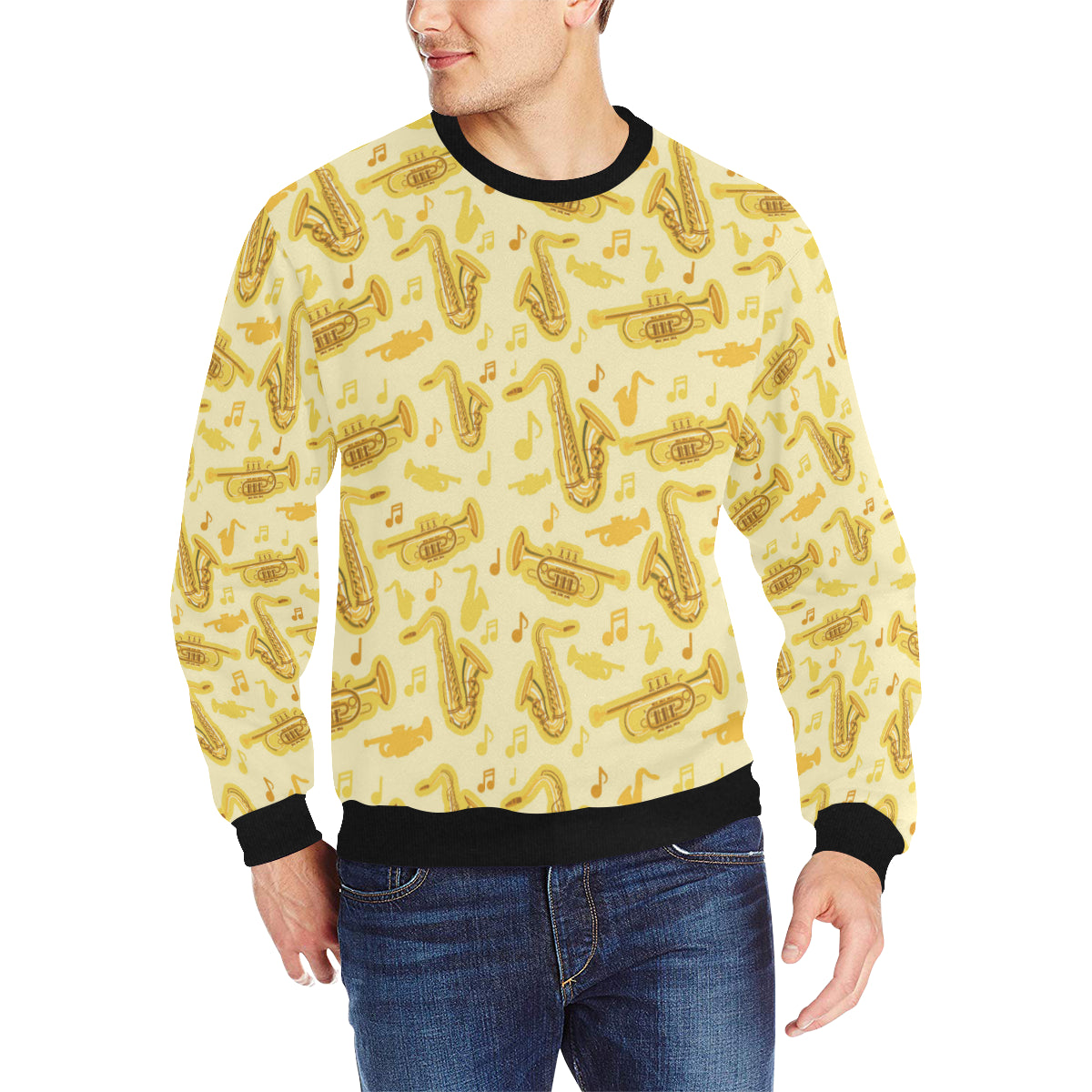 Saxophone cornet pattern yellow background Men's Crew Neck Sweatshirt