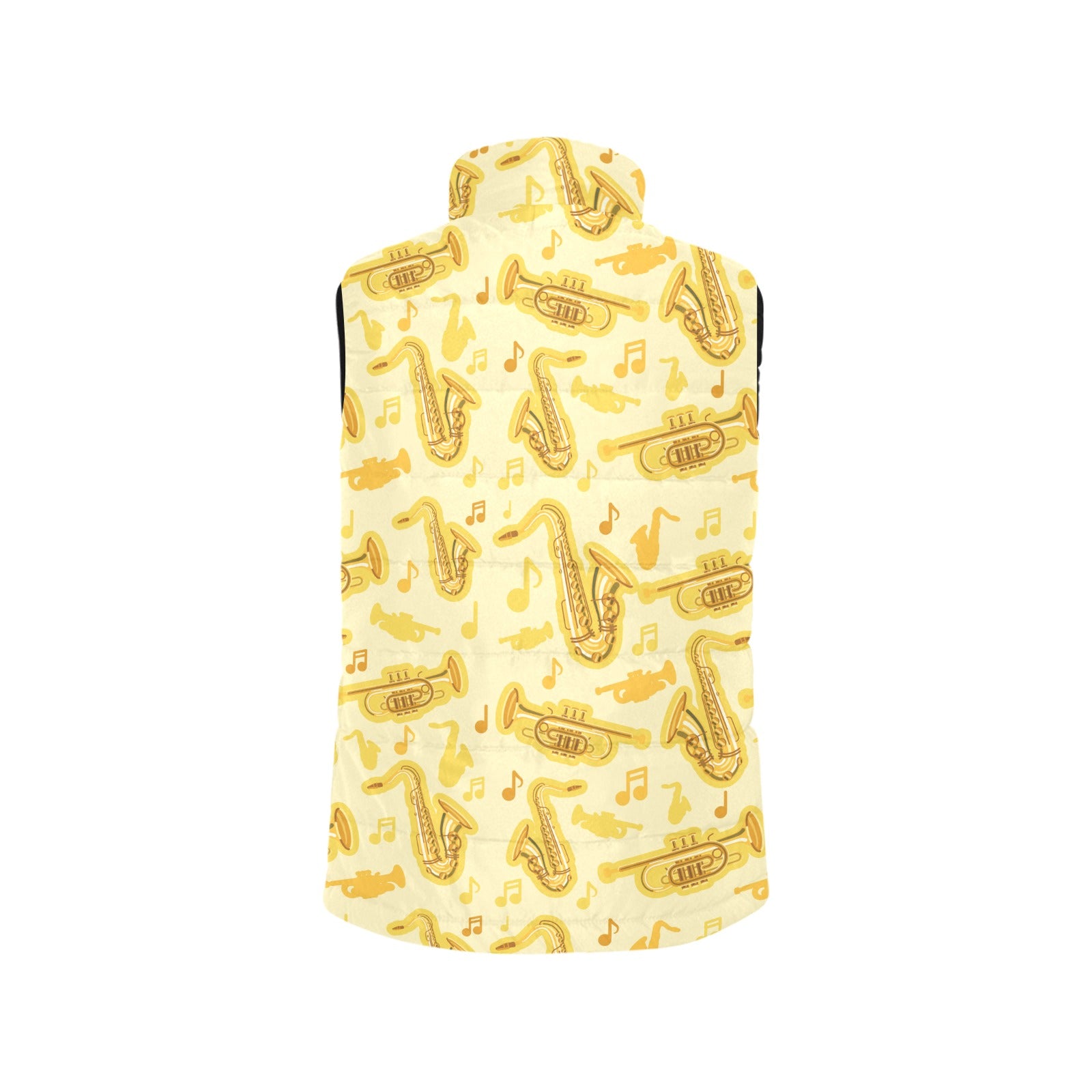Saxophone cornet pattern yellow background Women's Padded Vest