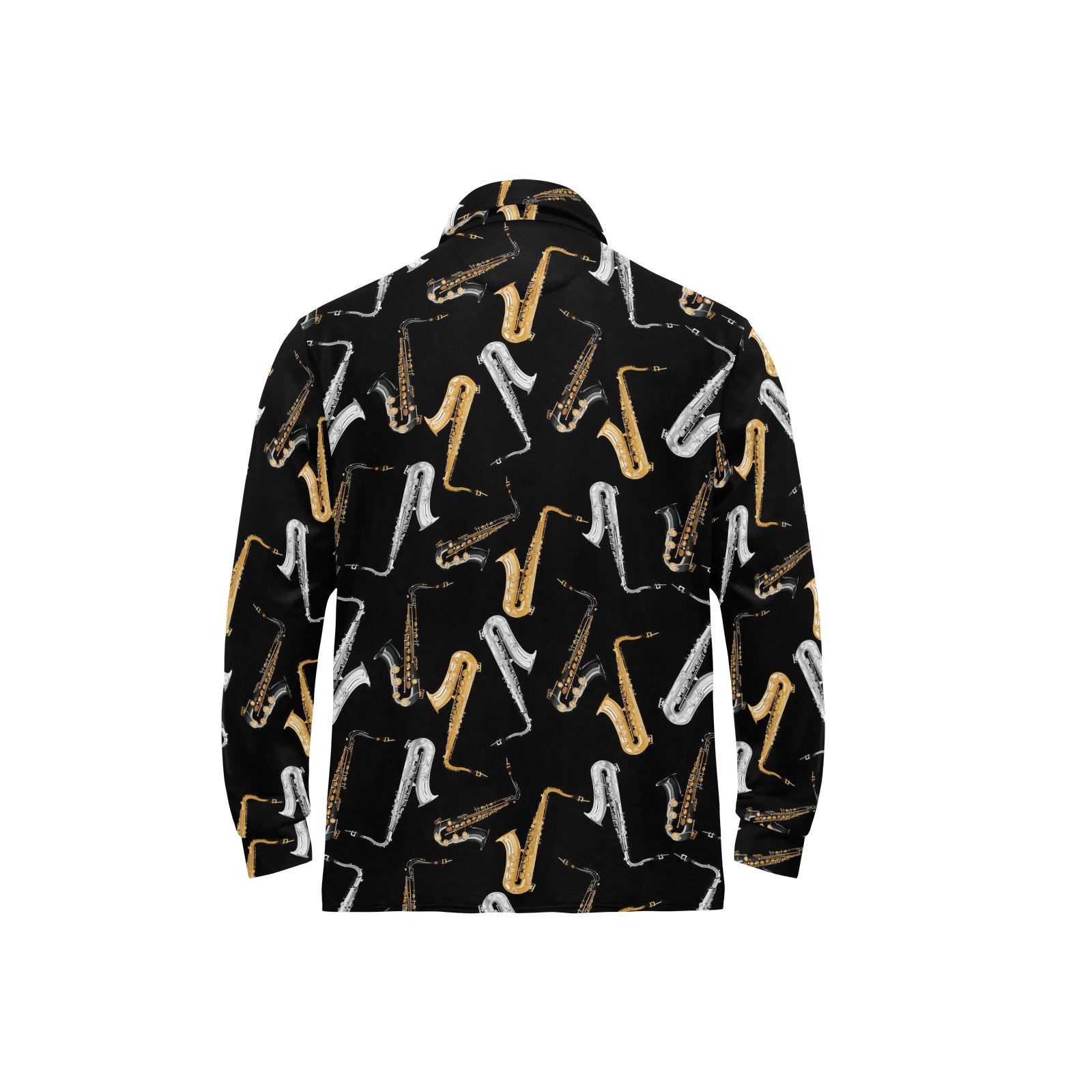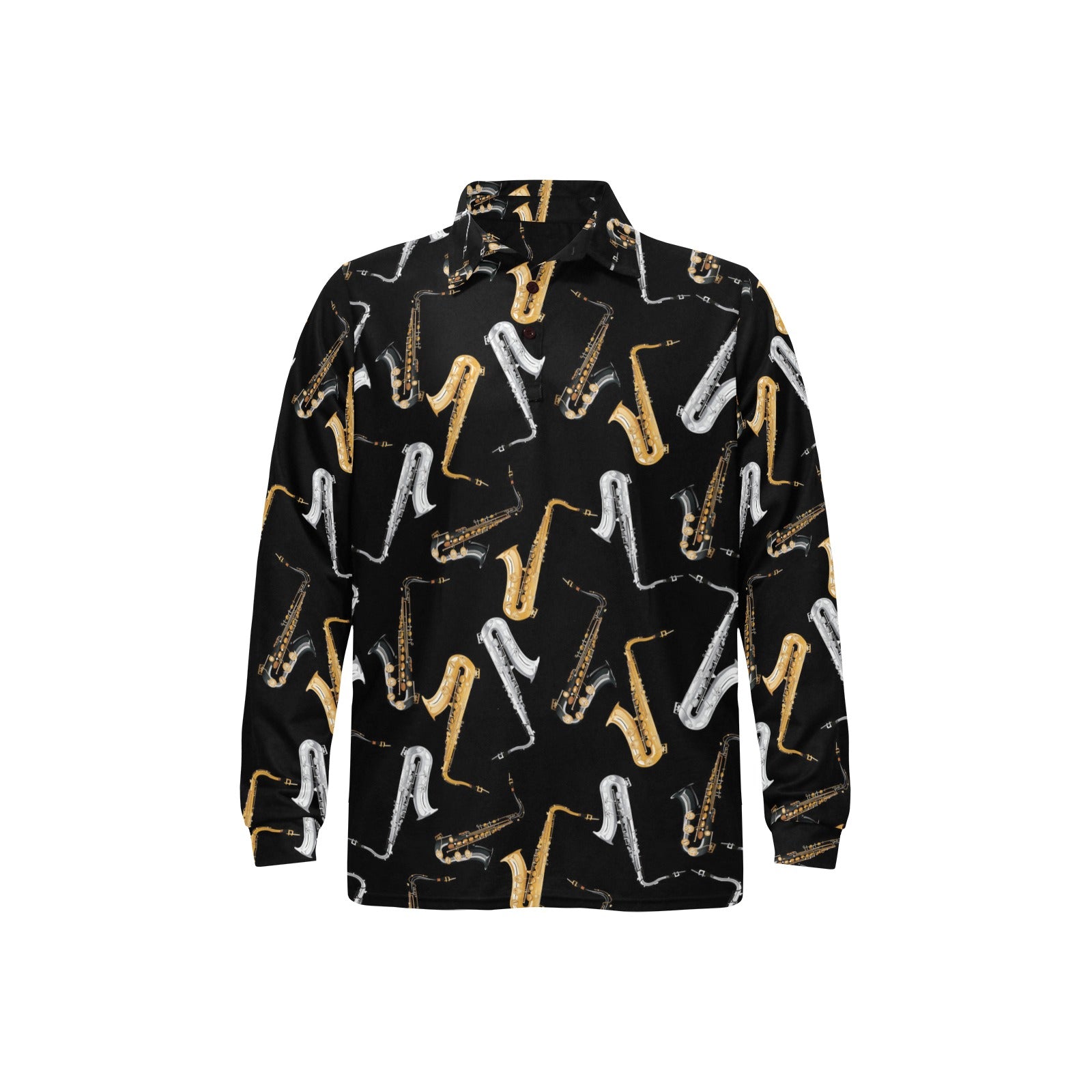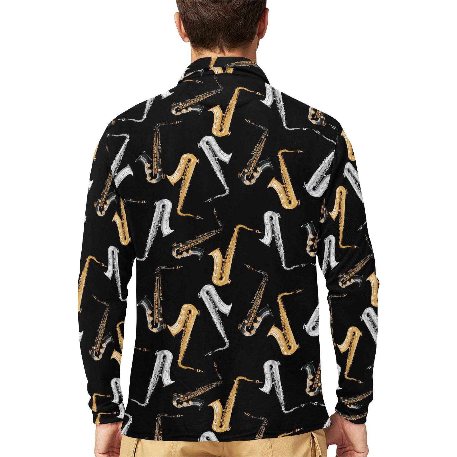 saxophone design pattern Men's Long Sleeve Polo Shirt