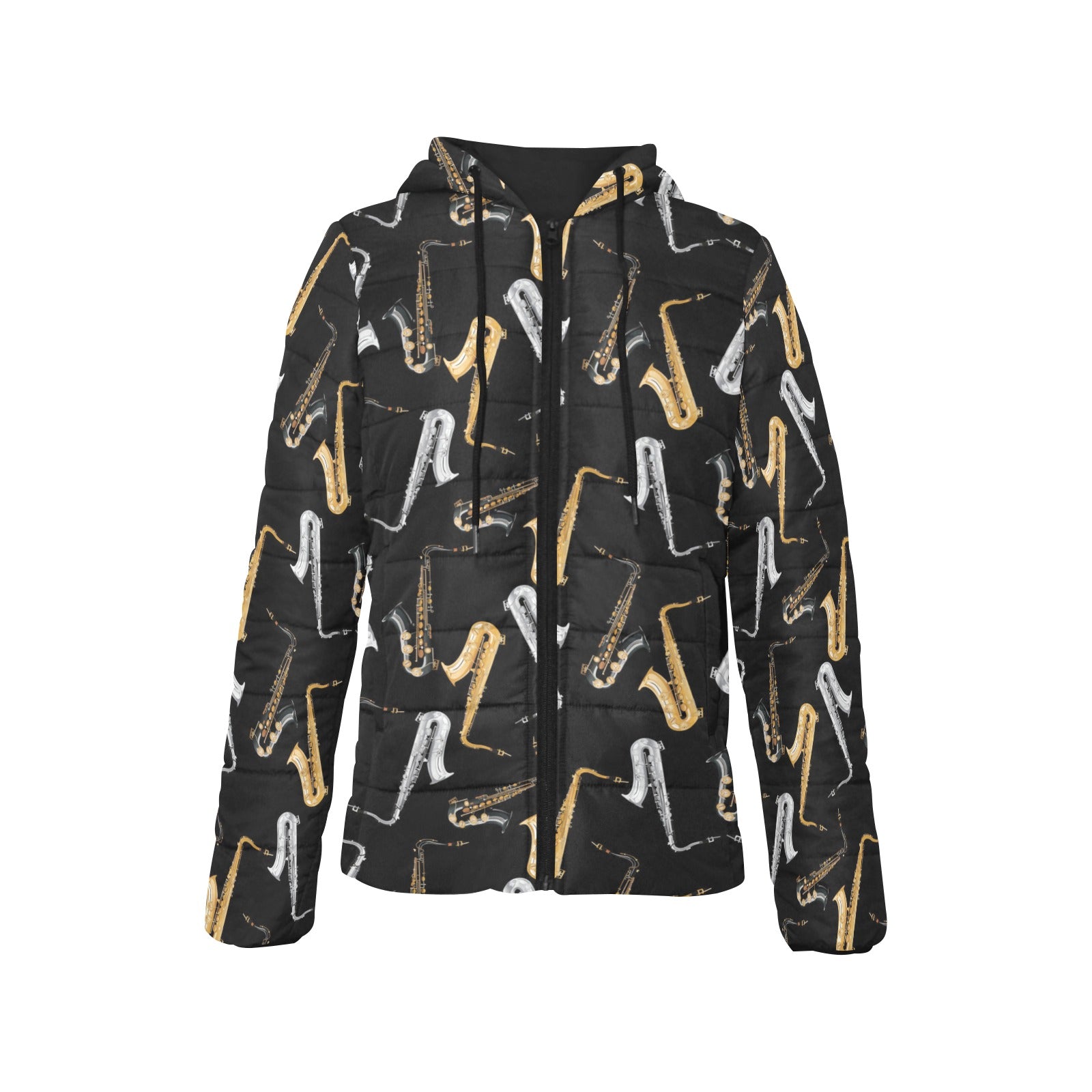 saxophone design pattern Women's Padded Hooded Jacket