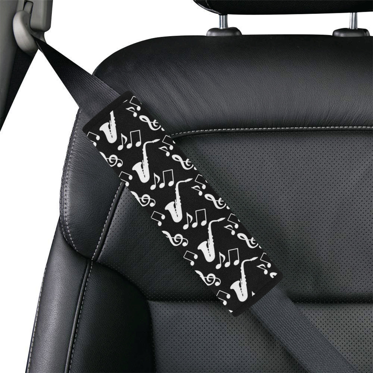 Saxophone music notes treble clef black white them Car Seat Belt Cover is a uniqued design and limited item. It made to order, hand printed, and sewn with love in our factory.