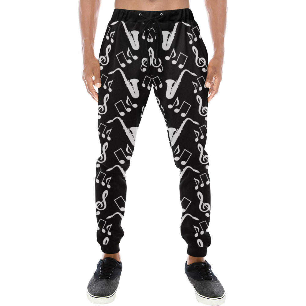 Saxophone music notes treble clef black white them Unisex Casual Sweatpants