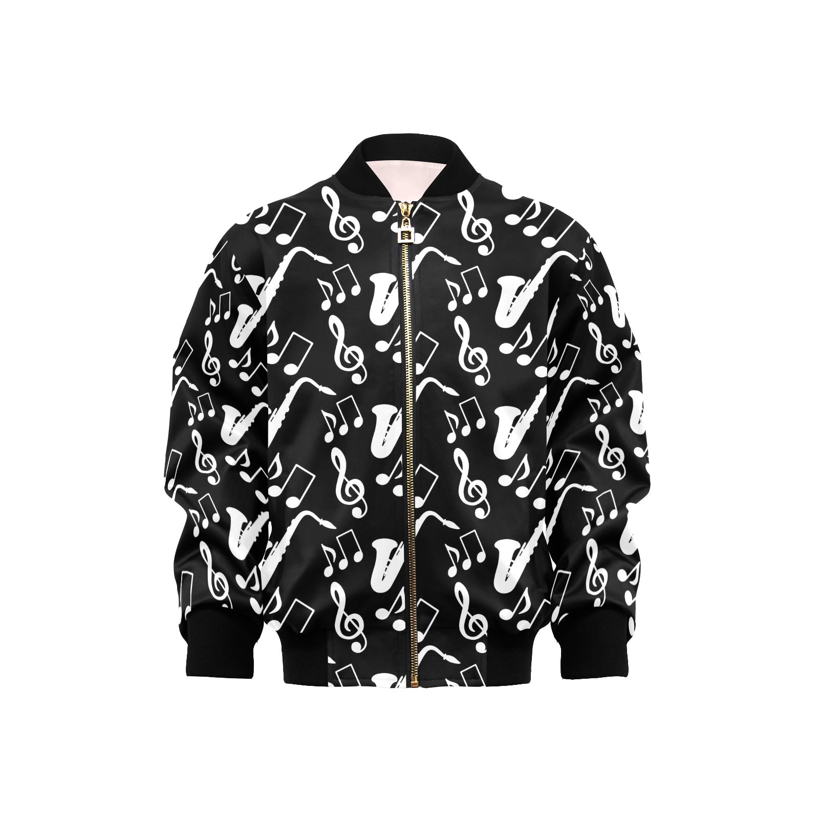 Saxophone music notes treble clef black white them Kids' Boys' Girls' Bomber Jacket