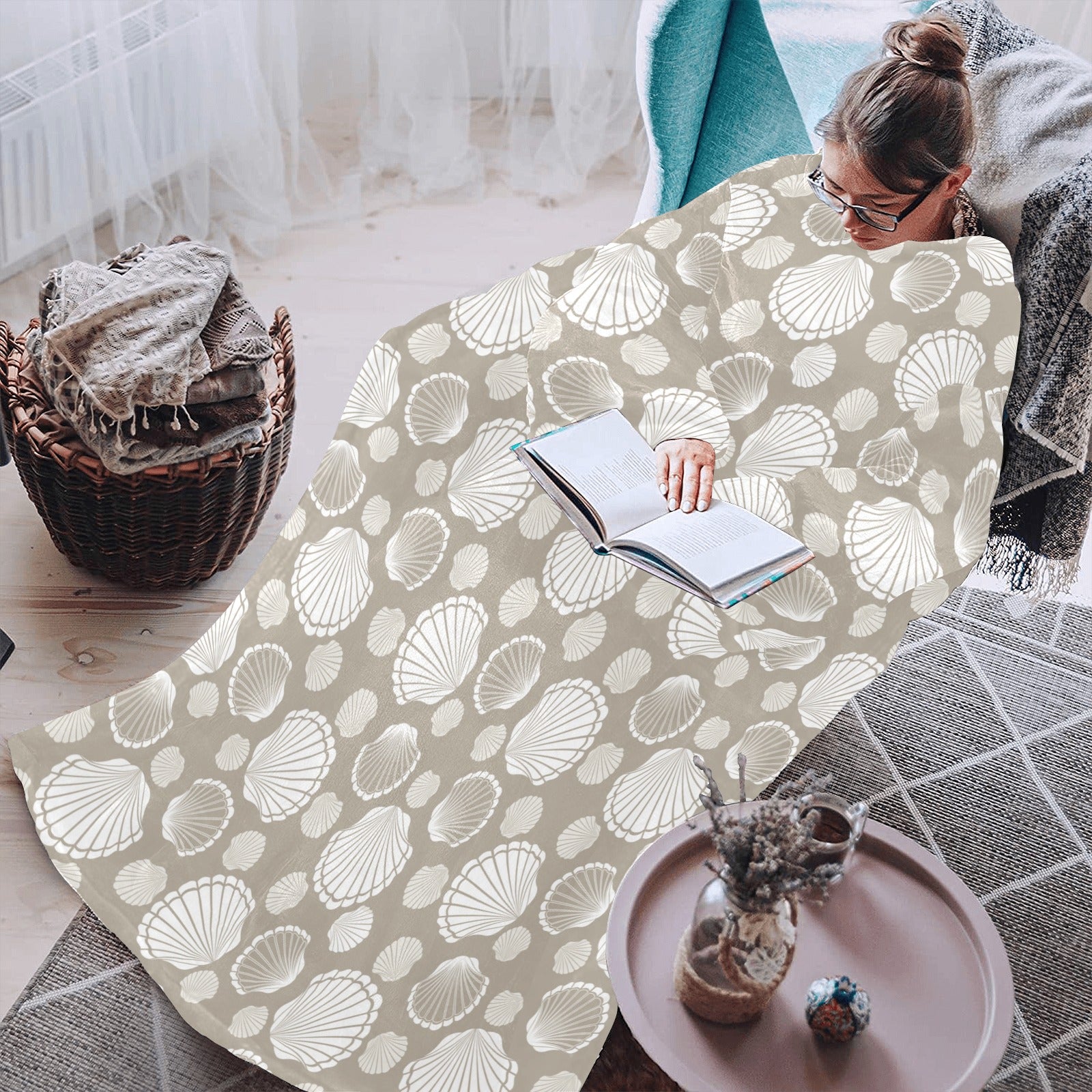 Scallop shell pattern Blanket Robe with Sleeves
