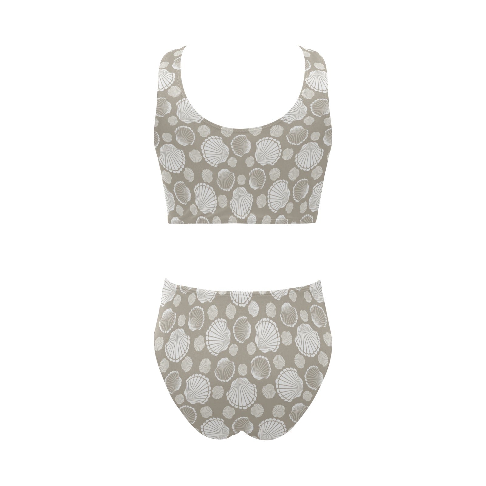 Scallop shell pattern Chest Bowknot High Waisted Bikini Swimsuit