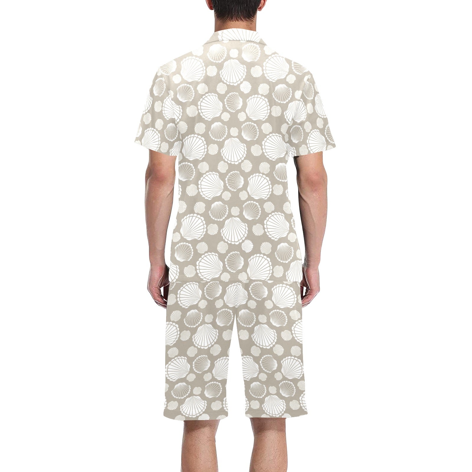 Scallop shell pattern Men's V-Neck Short Pajama Set