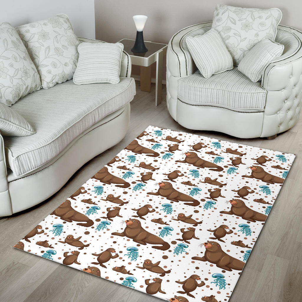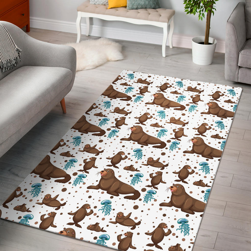 sea lion Seals jellyfish pattern Area Rug is a uniqued design and limited item. It made to order, hand printed, and sewn with love in our factory.