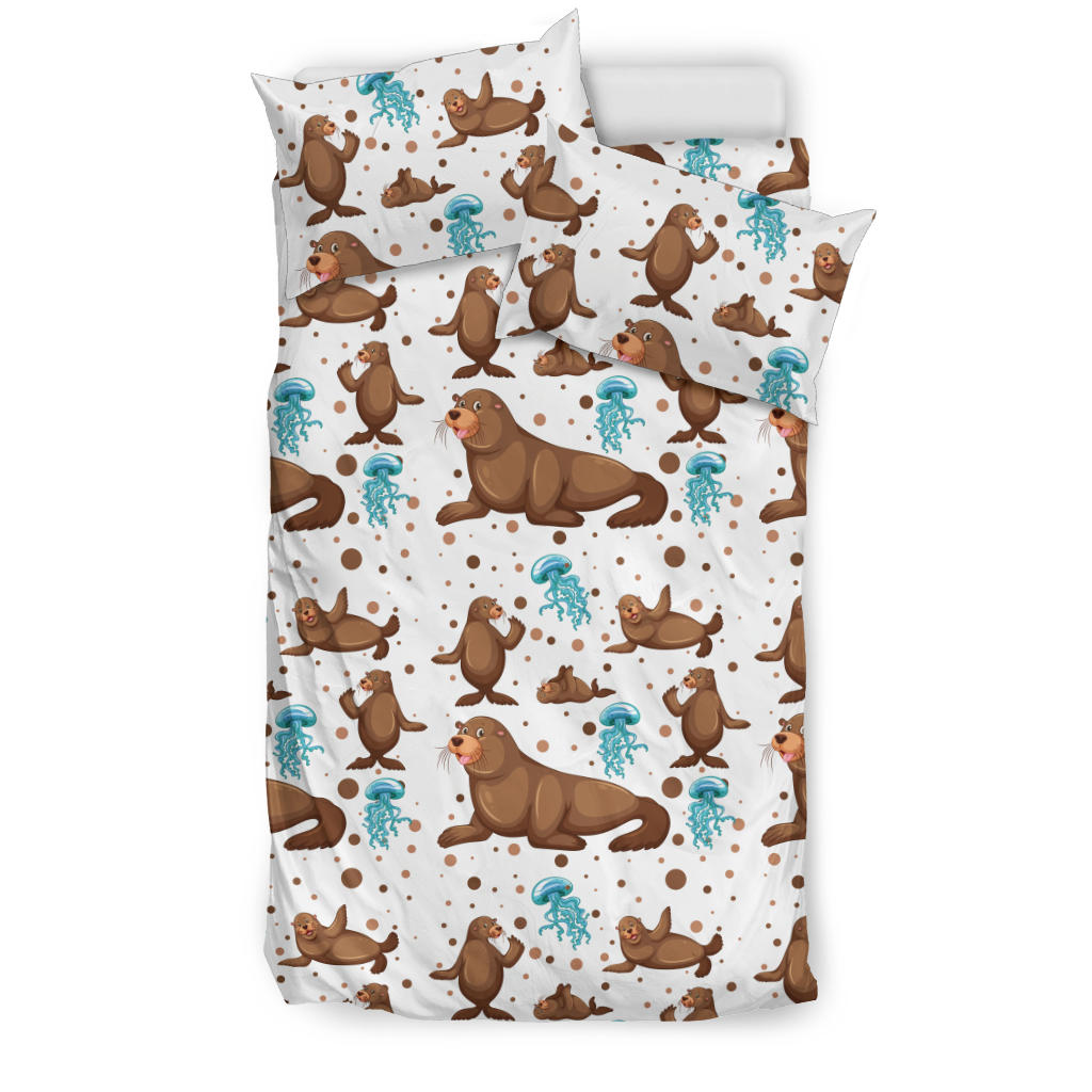Sea Lion Seals Jellyfish Pattern Bedding Set