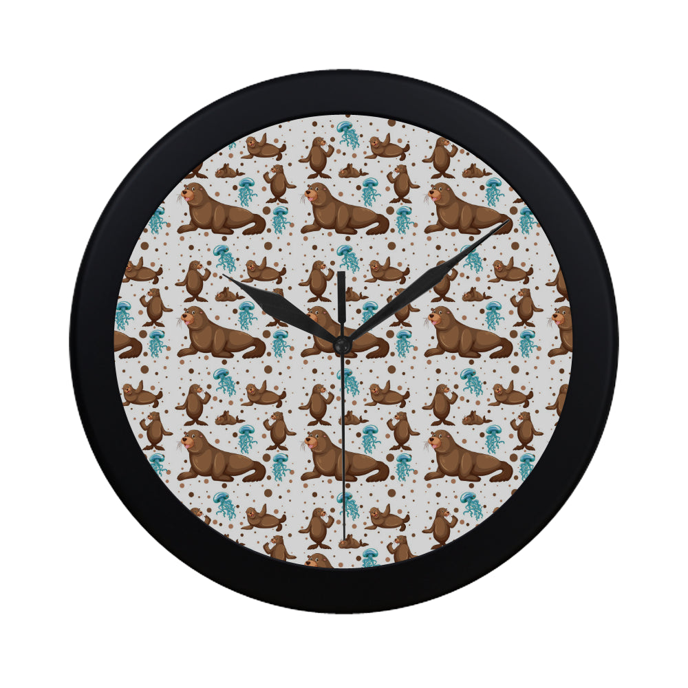 sea lion Seals jellyfish pattern Elegant Black Wall Clock