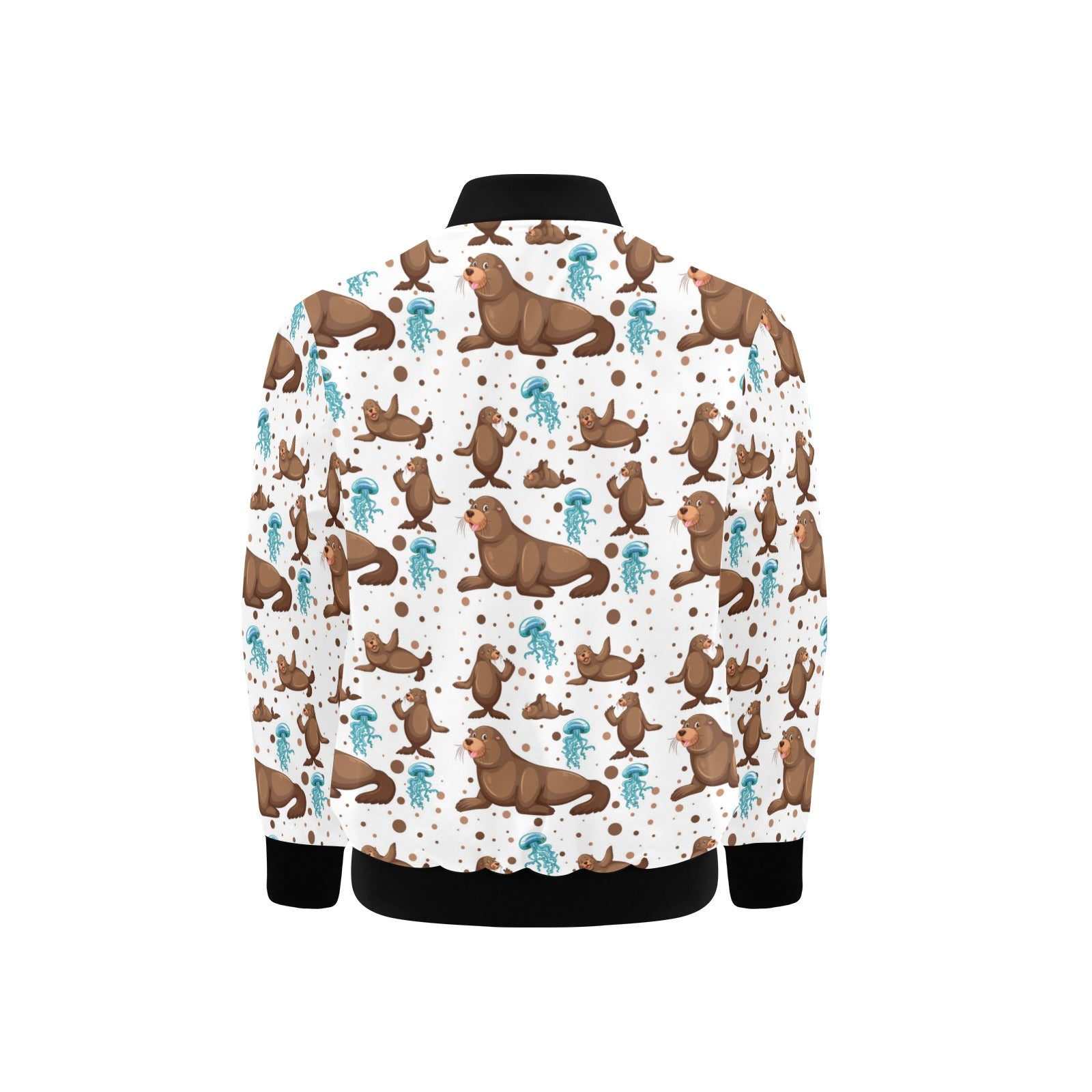 sea lion Seals jellyfish pattern Kids' Boys' Girls' Bomber Jacket