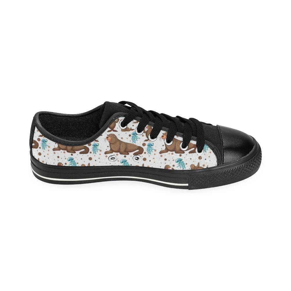 sea lion Seals jellyfish pattern Men's Low Top Canvas Shoes Black