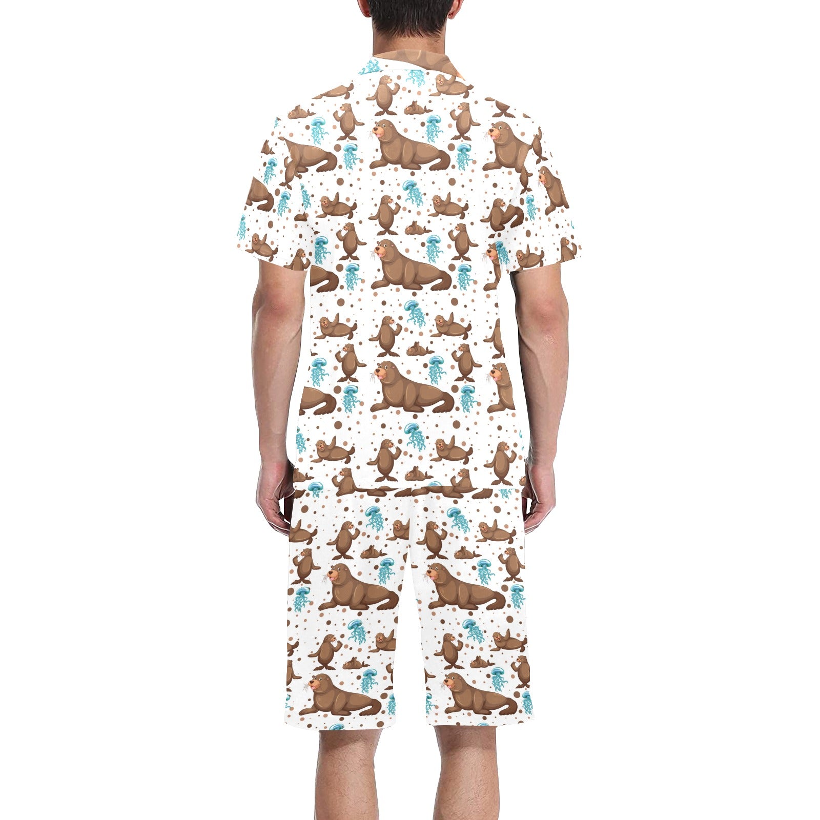 sea lion Seals jellyfish pattern Men's V-Neck Short Pajama Set