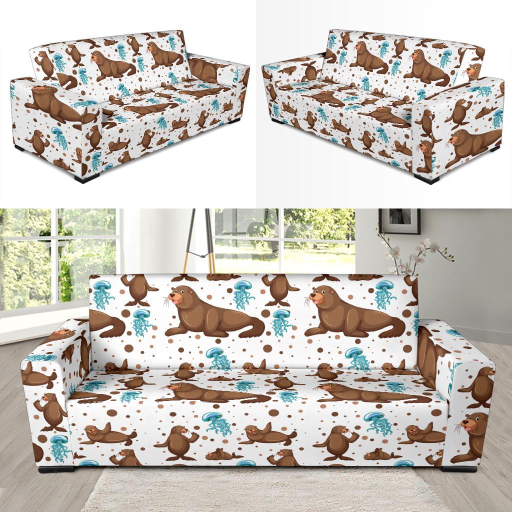 Sea Lion Seals Jellyfish Pattern Sofa Slipcover