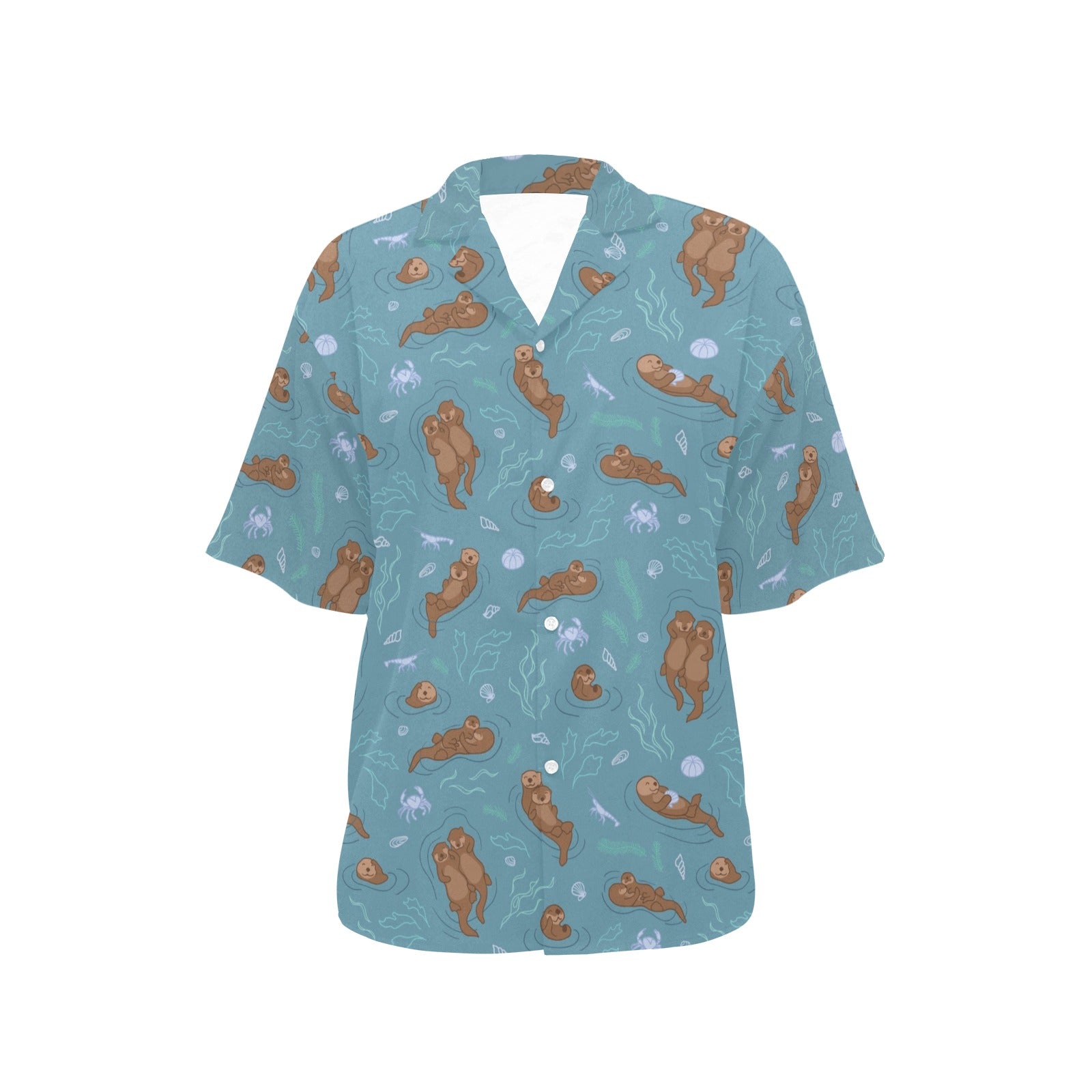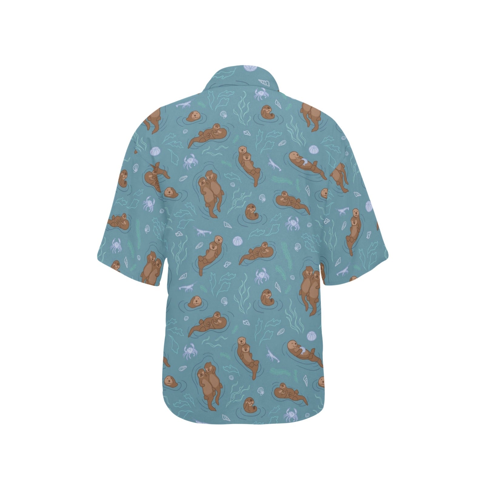 Sea otters pattern Women's All Over Print Hawaiian Shirt
