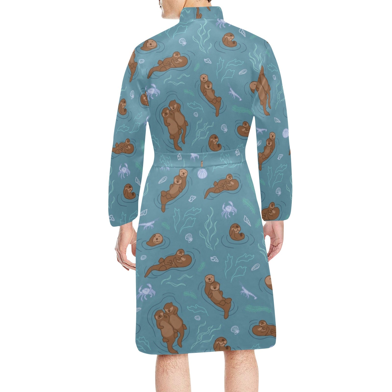 Sea otters pattern Men's Long Sleeve Belted Night Robe