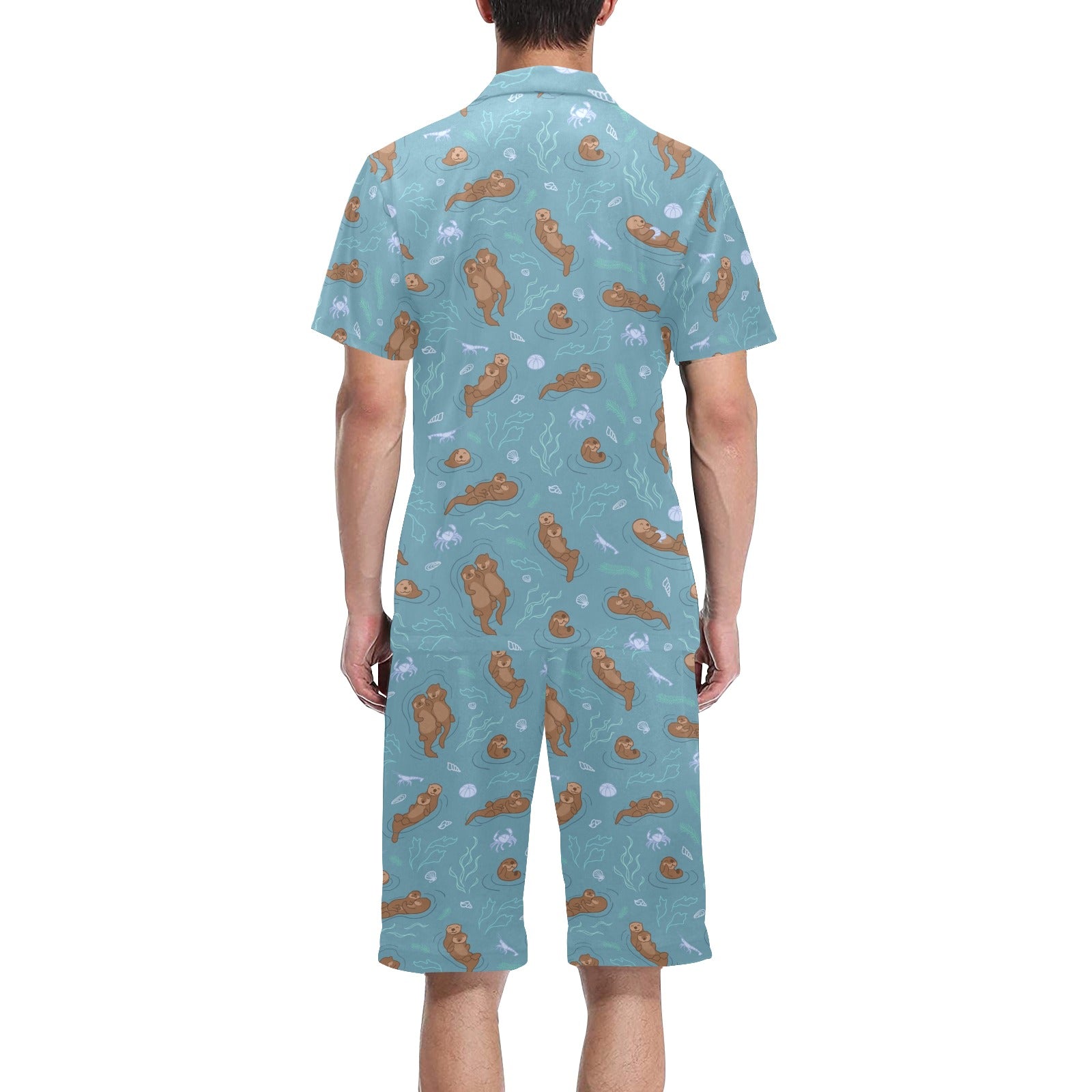Sea otters pattern Men's V-Neck Short Pajama Set