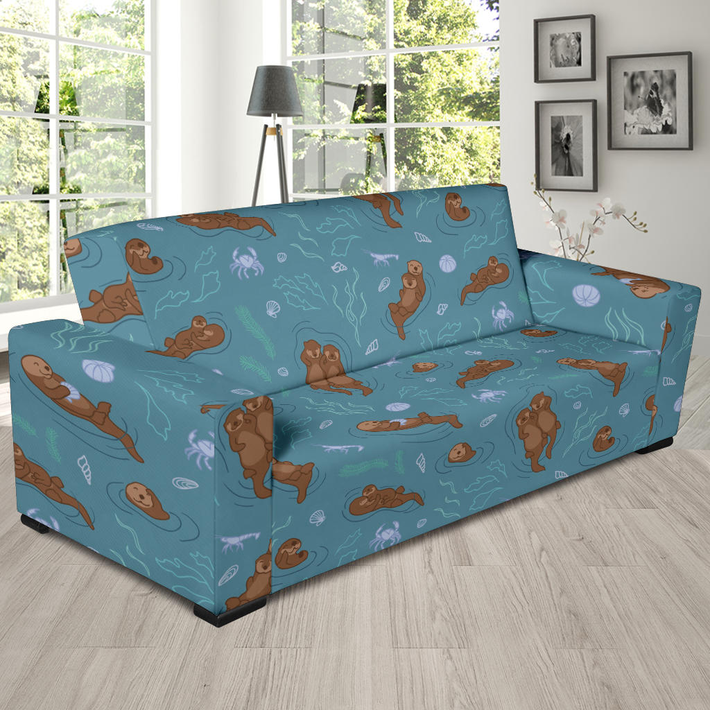 Sea otters pattern Sofa Slipcover is a uniqued design and limited item. It made to order, hand printed, and sewn with love in our factory.