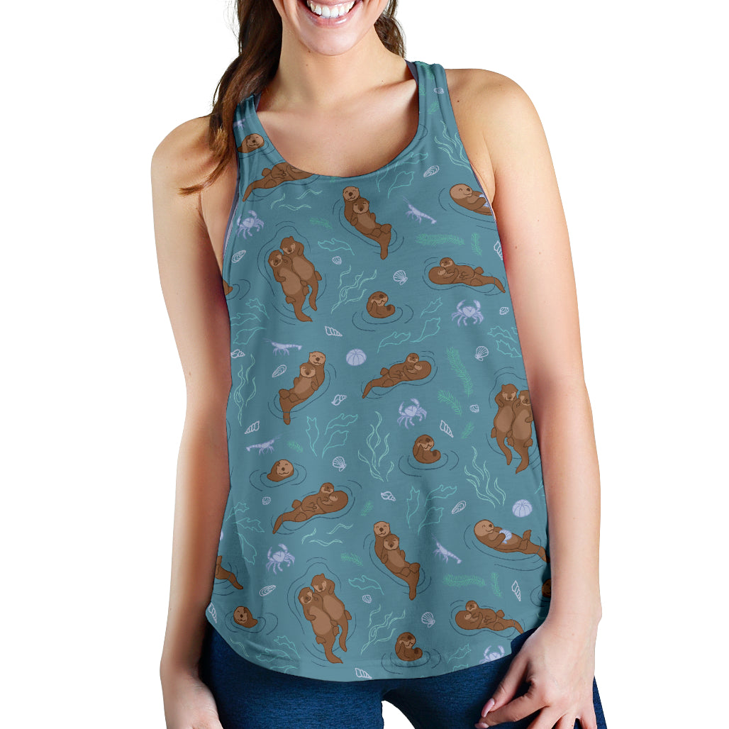 Sea otters pattern Women Racerback Tank Top