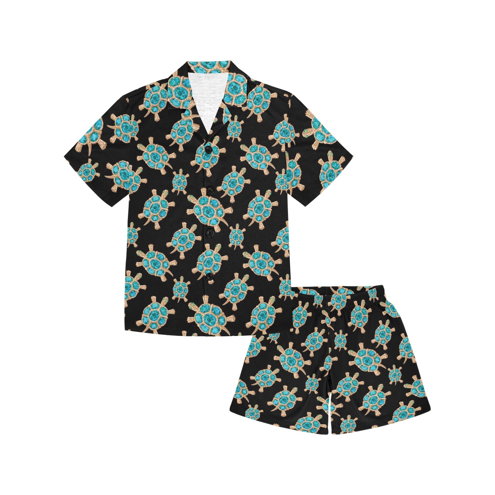 Sea turtle blue stone pattern Kids' Boys' Girls' V-Neck Short Pajama Set