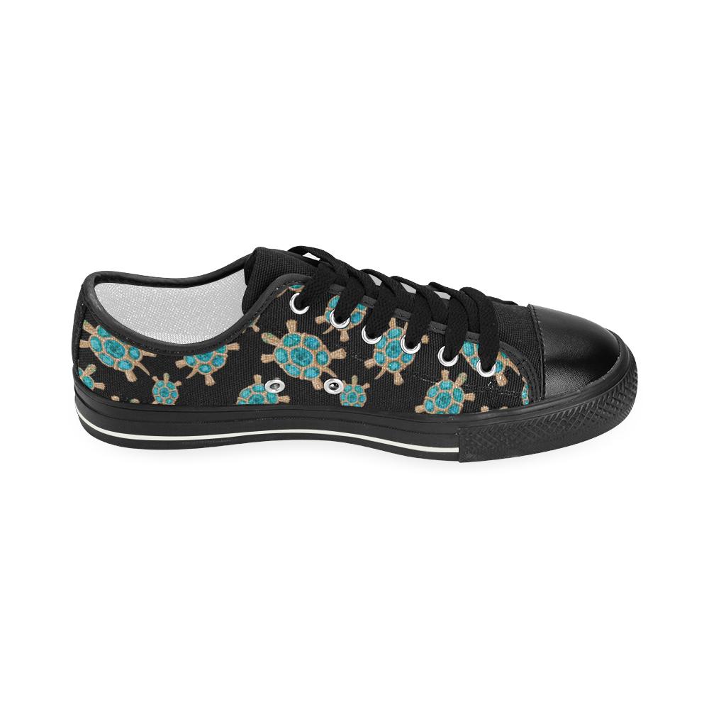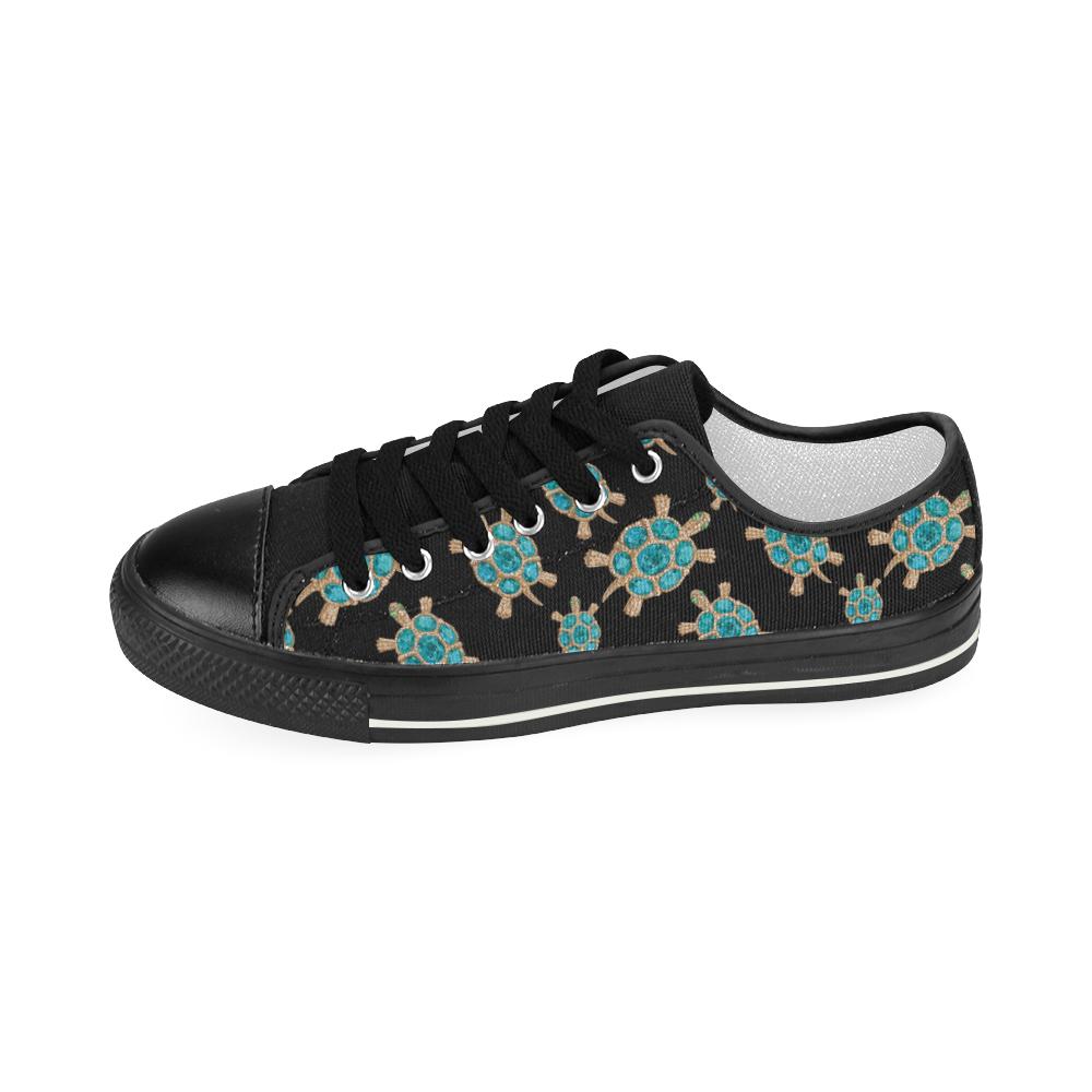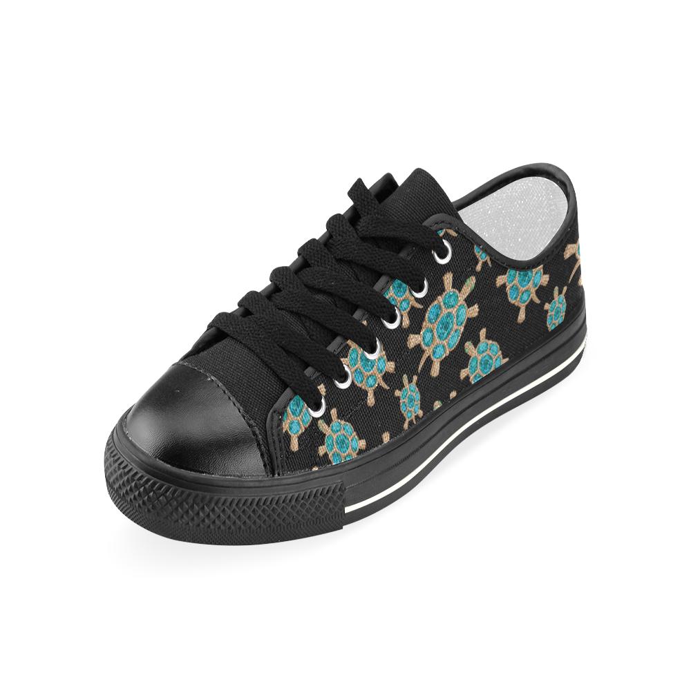 Sea turtle blue stone pattern Kids' Boys' Girls' Low Top Canvas Shoes Black