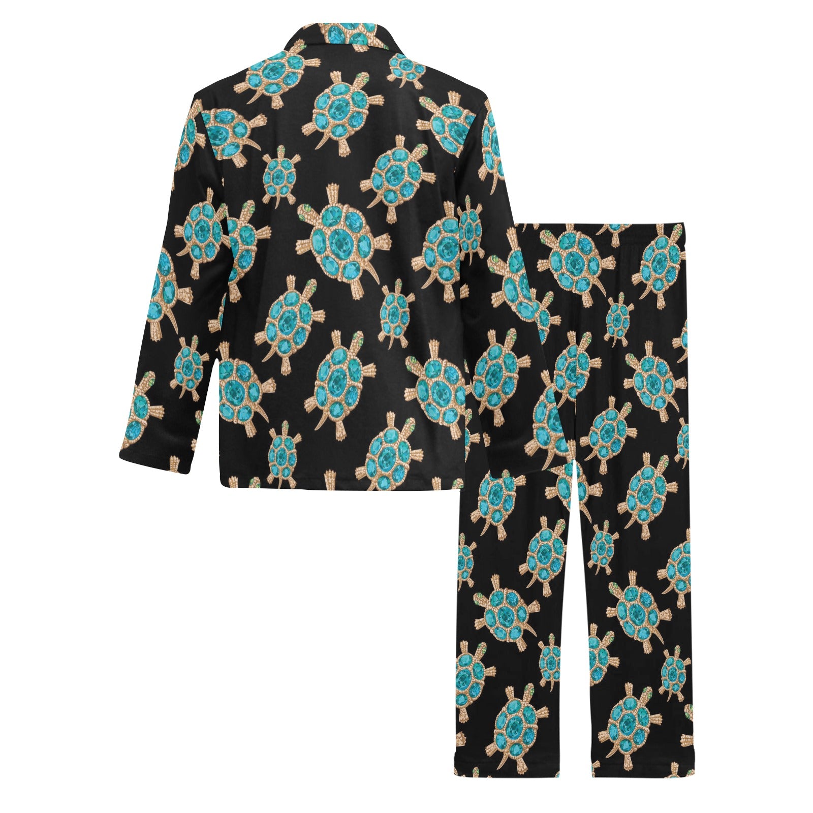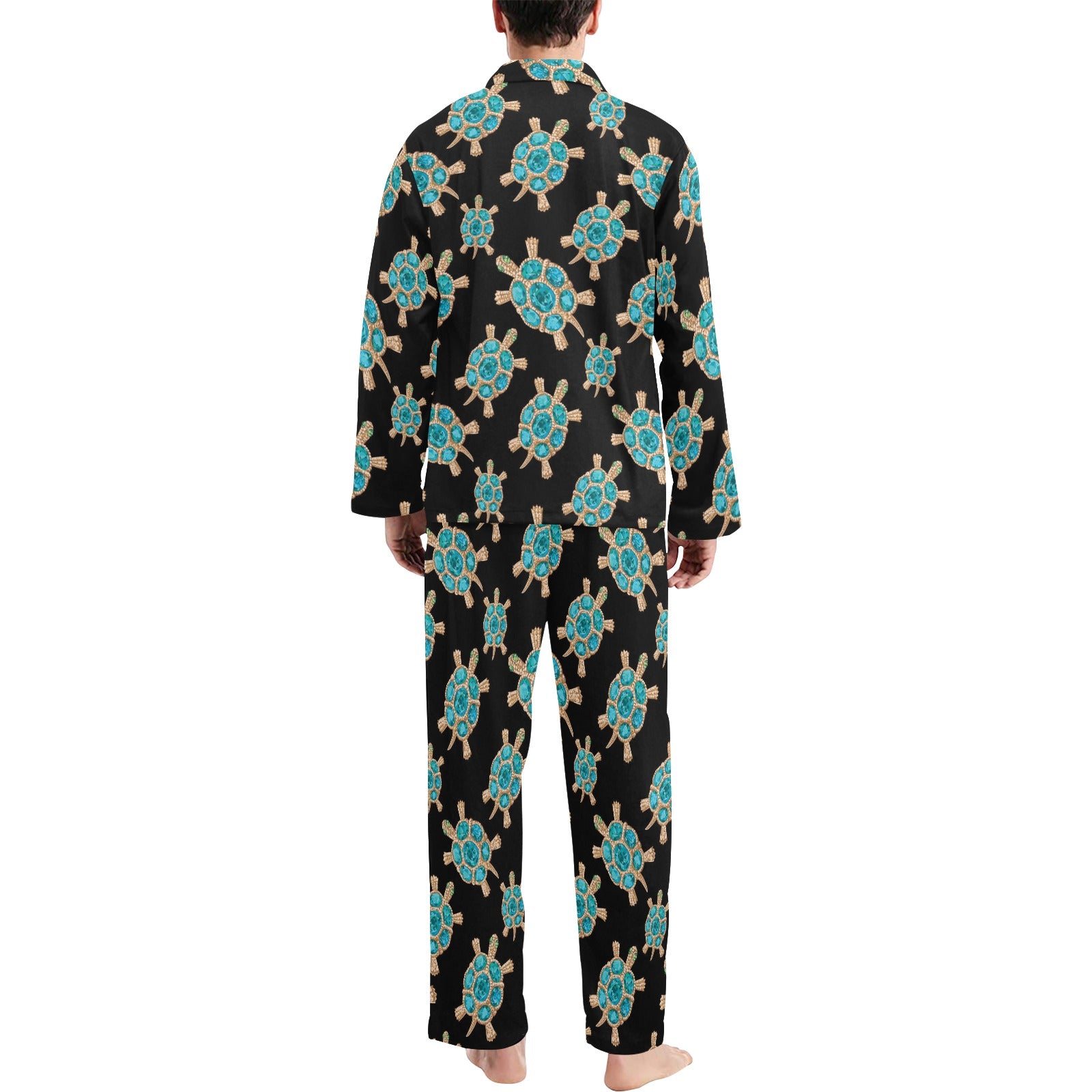 Sea turtle blue stone pattern Men's Long Pajama Set