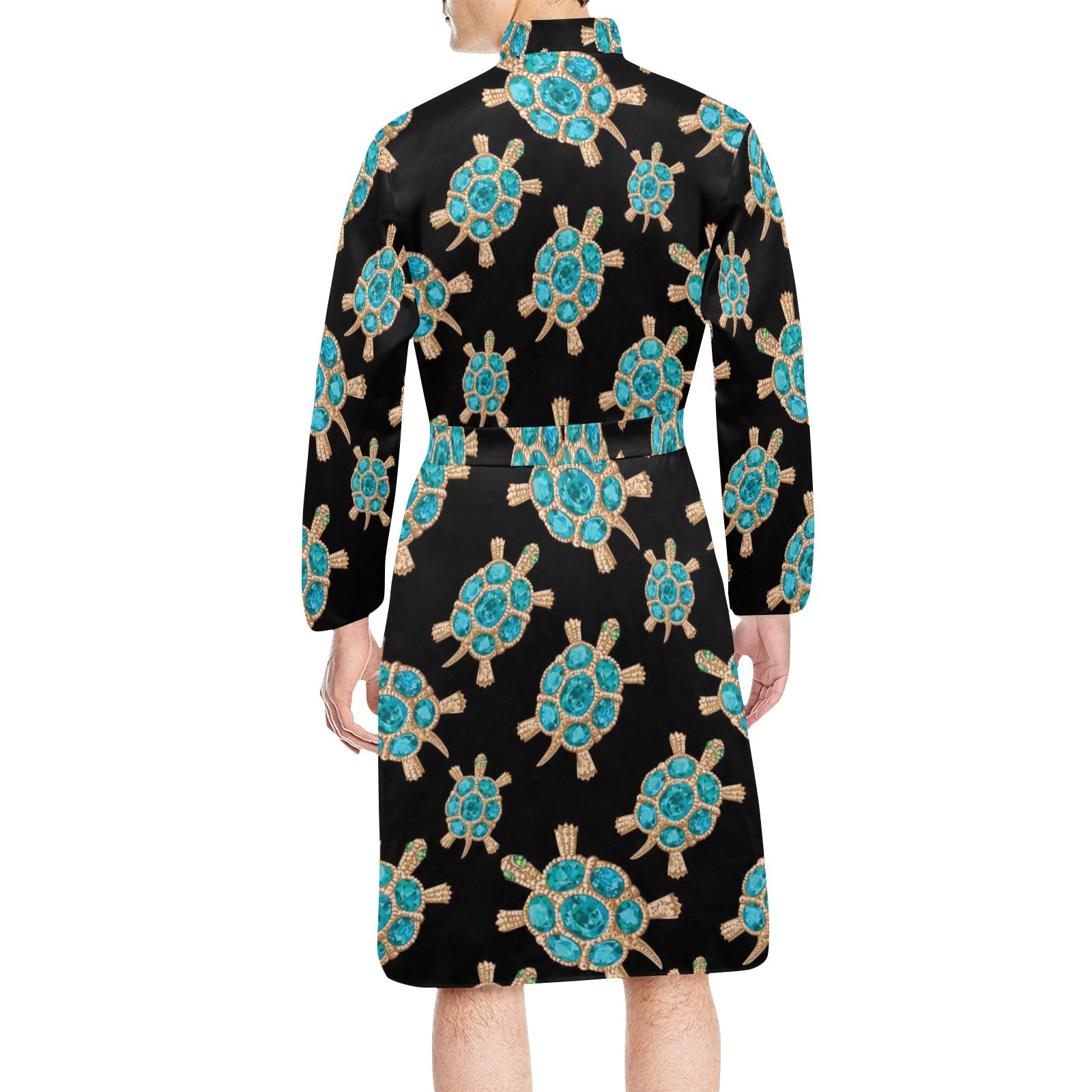 Sea turtle blue stone pattern Men's Long Sleeve Belted Night Robe
