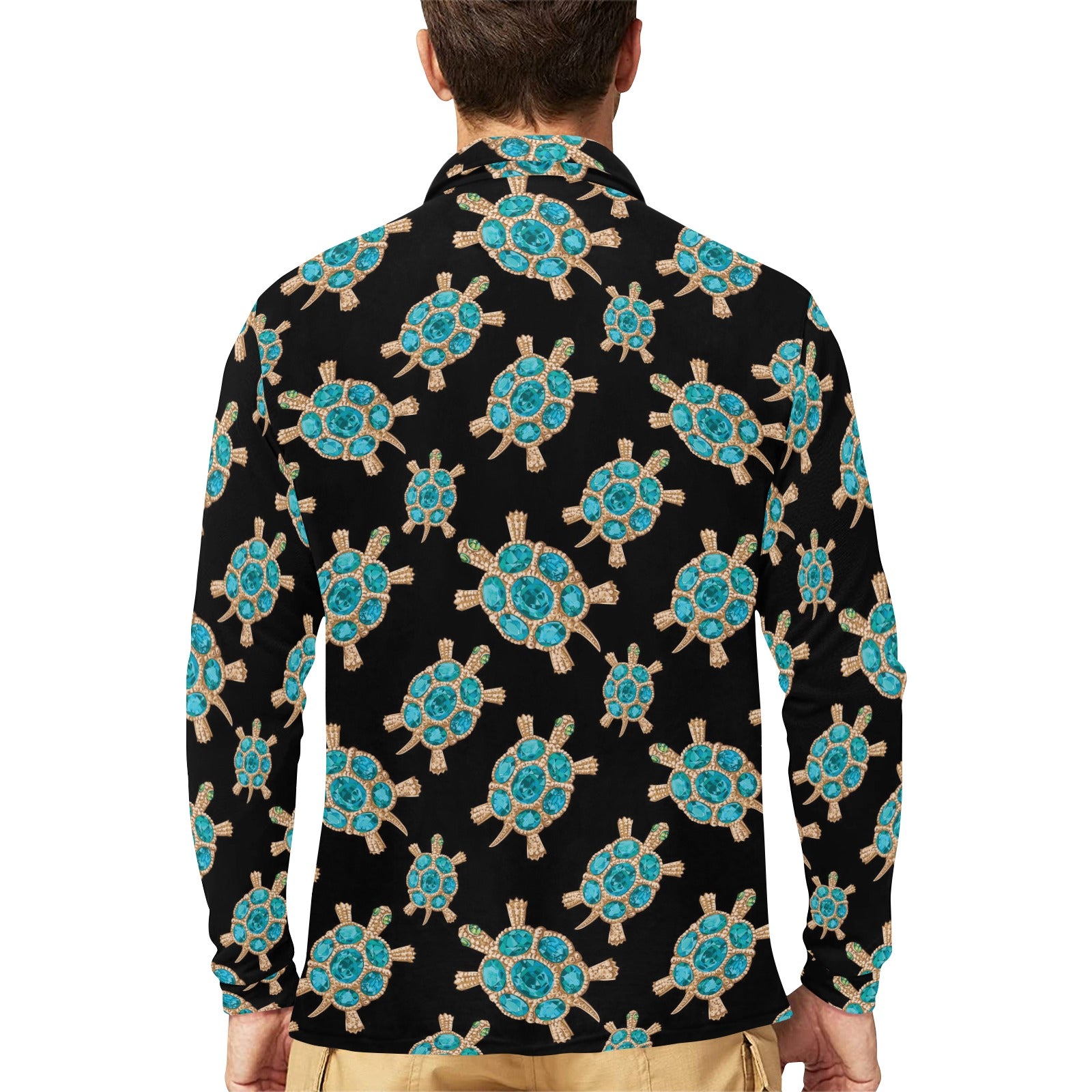 Sea turtle blue stone pattern Men's Long Sleeve Polo Shirt