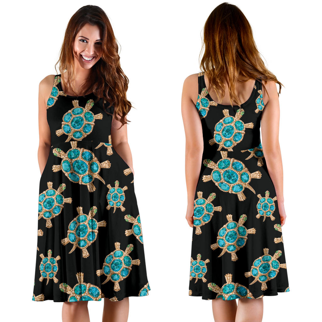 Sea Turtle Blue Stone Pattern Sleeveless Midi Dress
