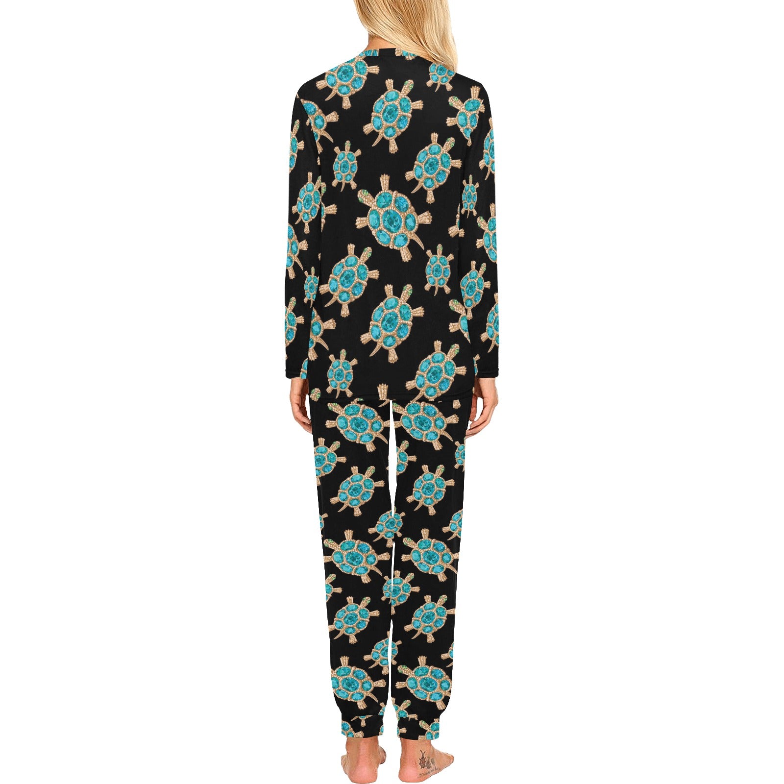 Sea turtle blue stone pattern Women's All Over Print Pajama Set