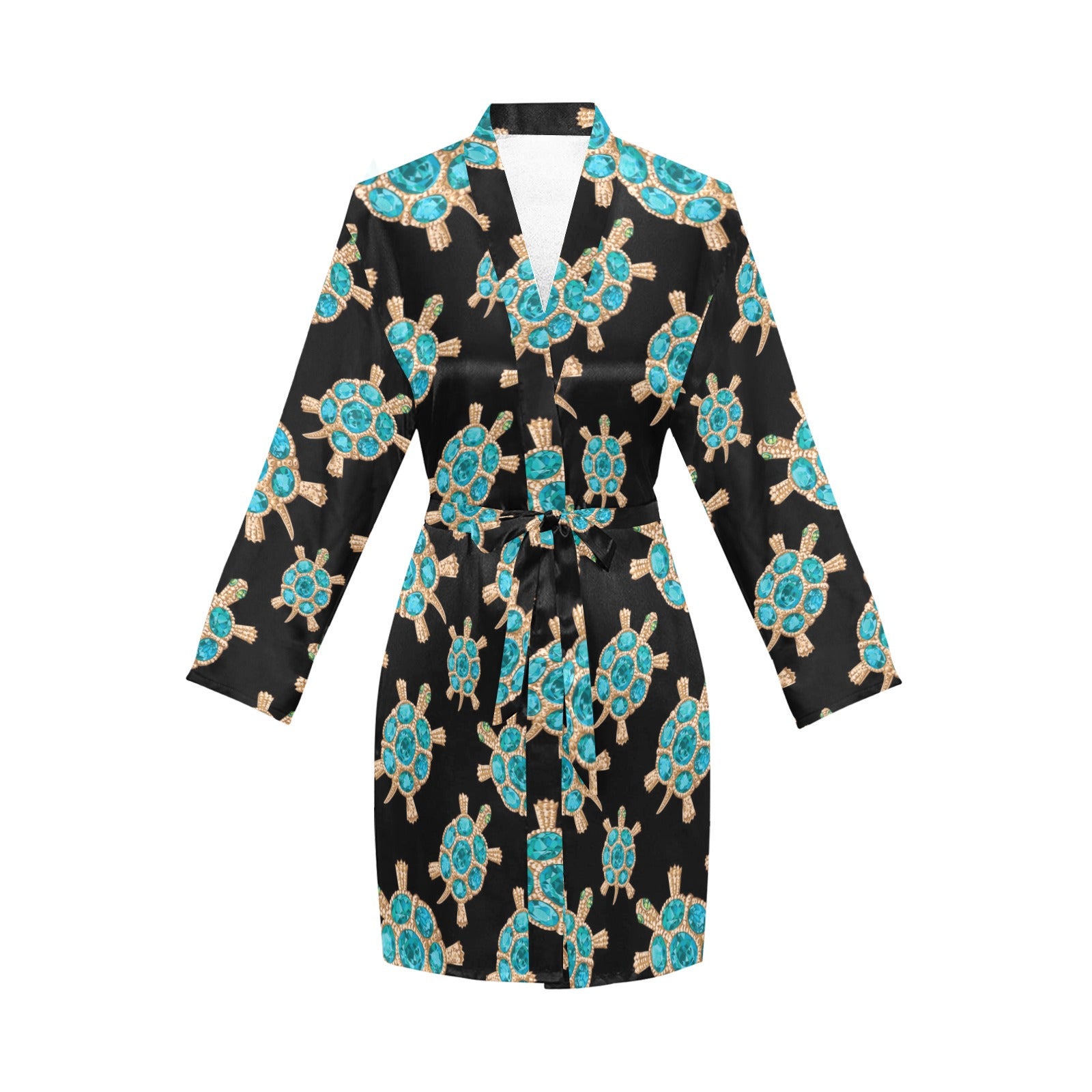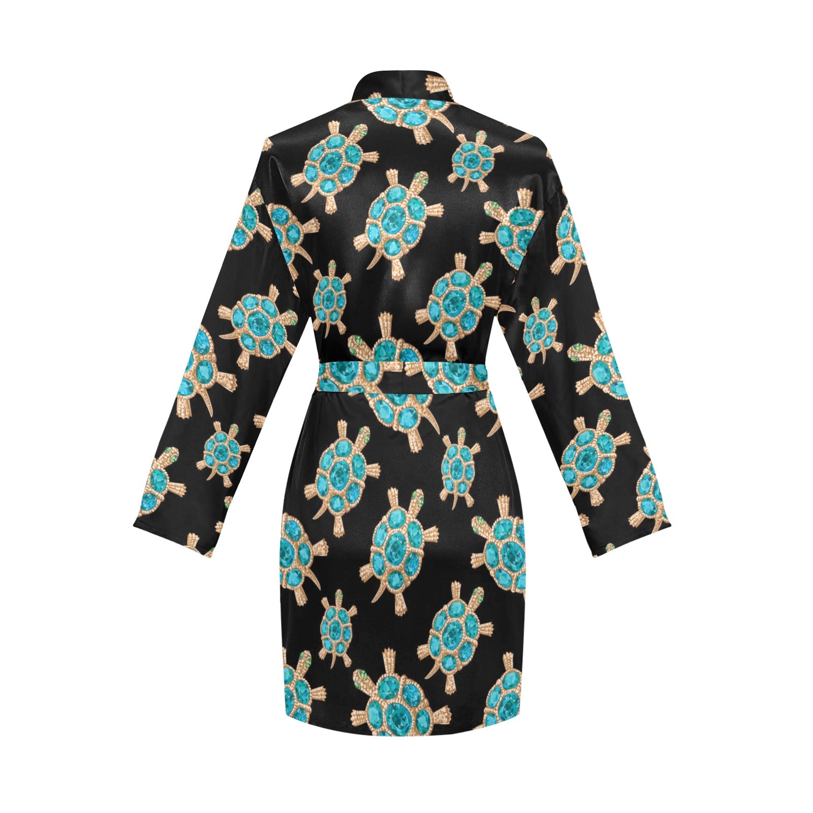 Sea turtle blue stone pattern Women's Long Sleeve Belted Night Robe