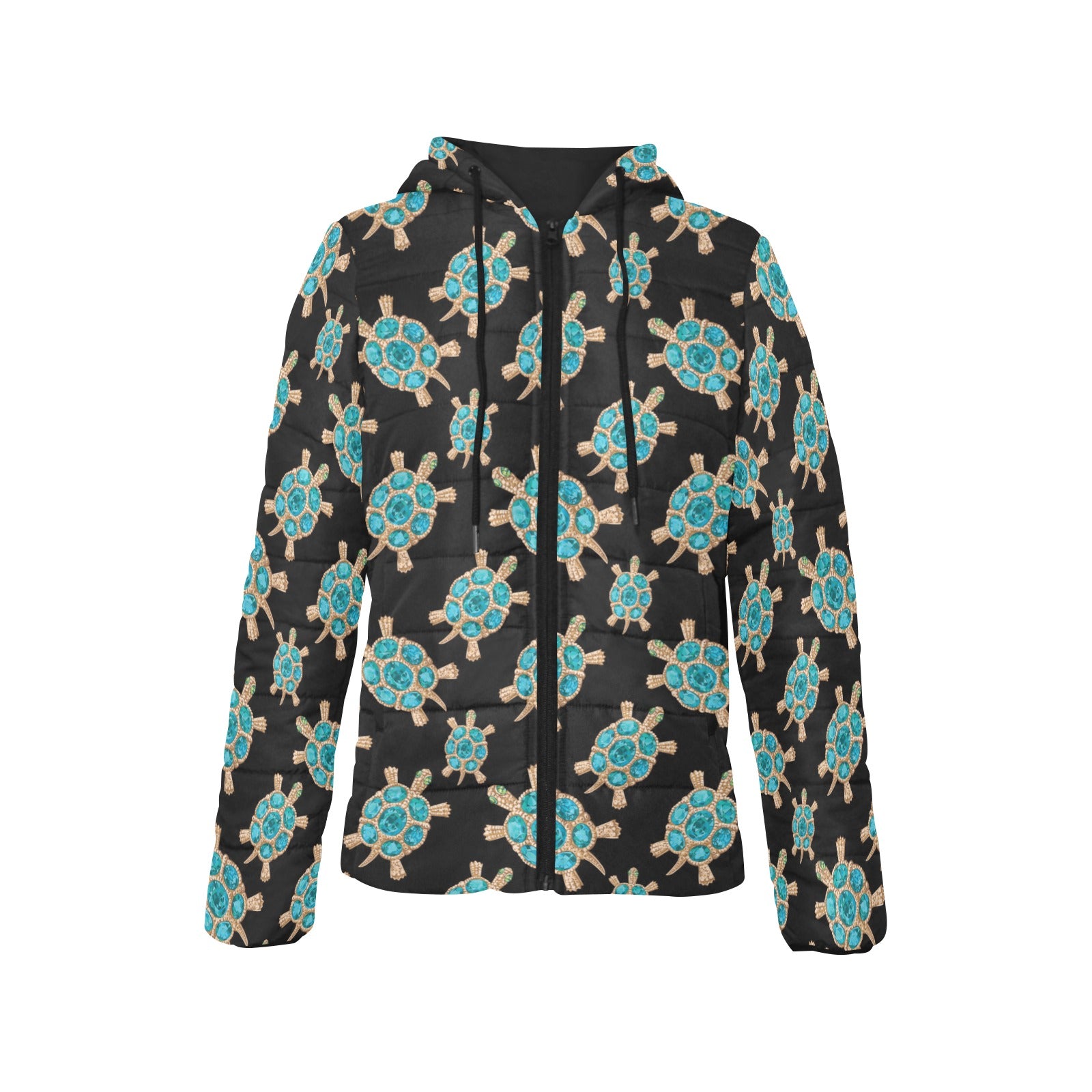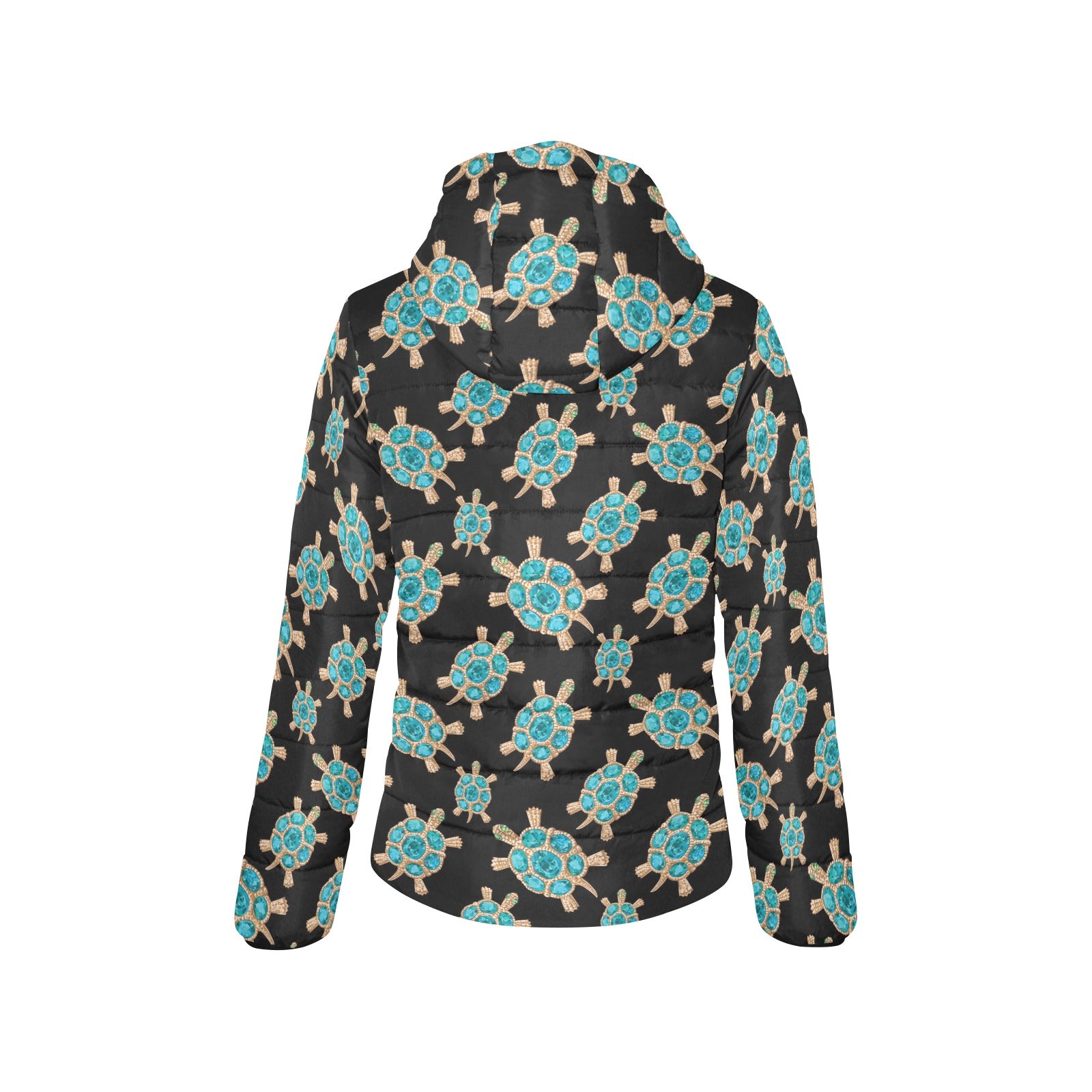 Sea turtle blue stone pattern Women's Padded Hooded Jacket