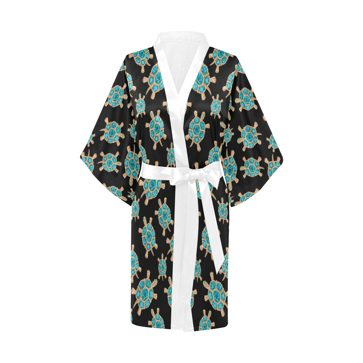 Sea turtle blue stone pattern Women's Short Kimono Robe is a uniqued design and limited item. It made to order, hand printed, and sewn with love in our factory.
