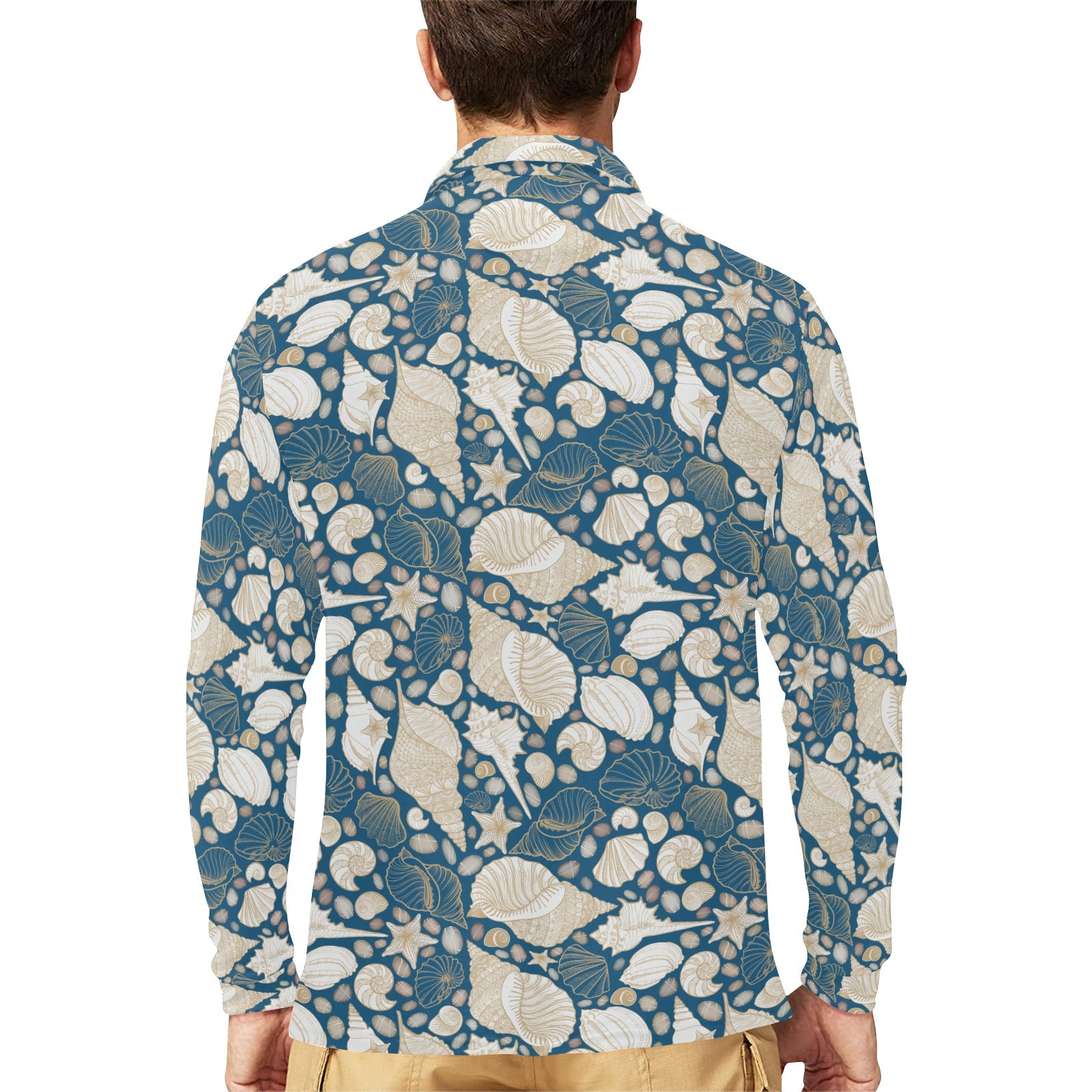 Sea turtle Polynesian Tribal design pattern Men's Long Sleeve Polo Shirt