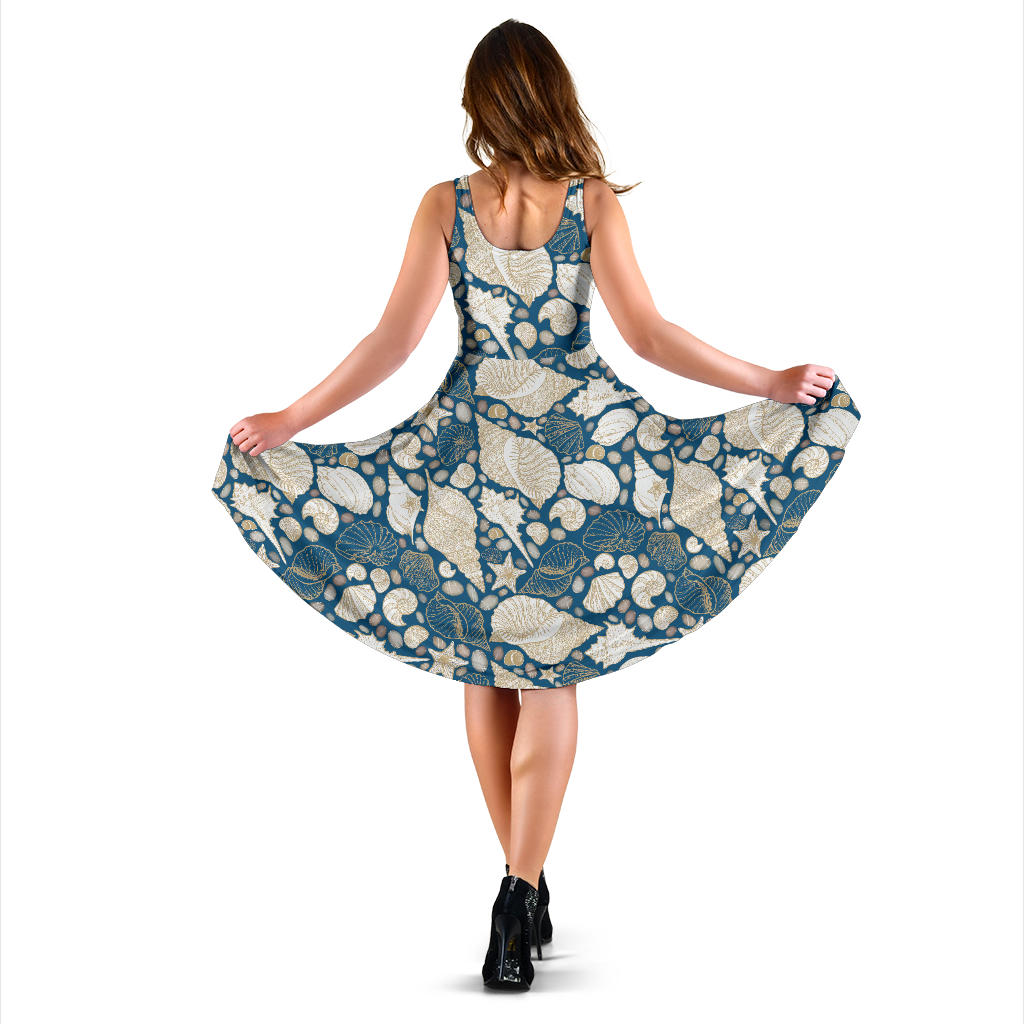 Shell Polynesian Tribal Design Pattern Sleeveless Midi Dress