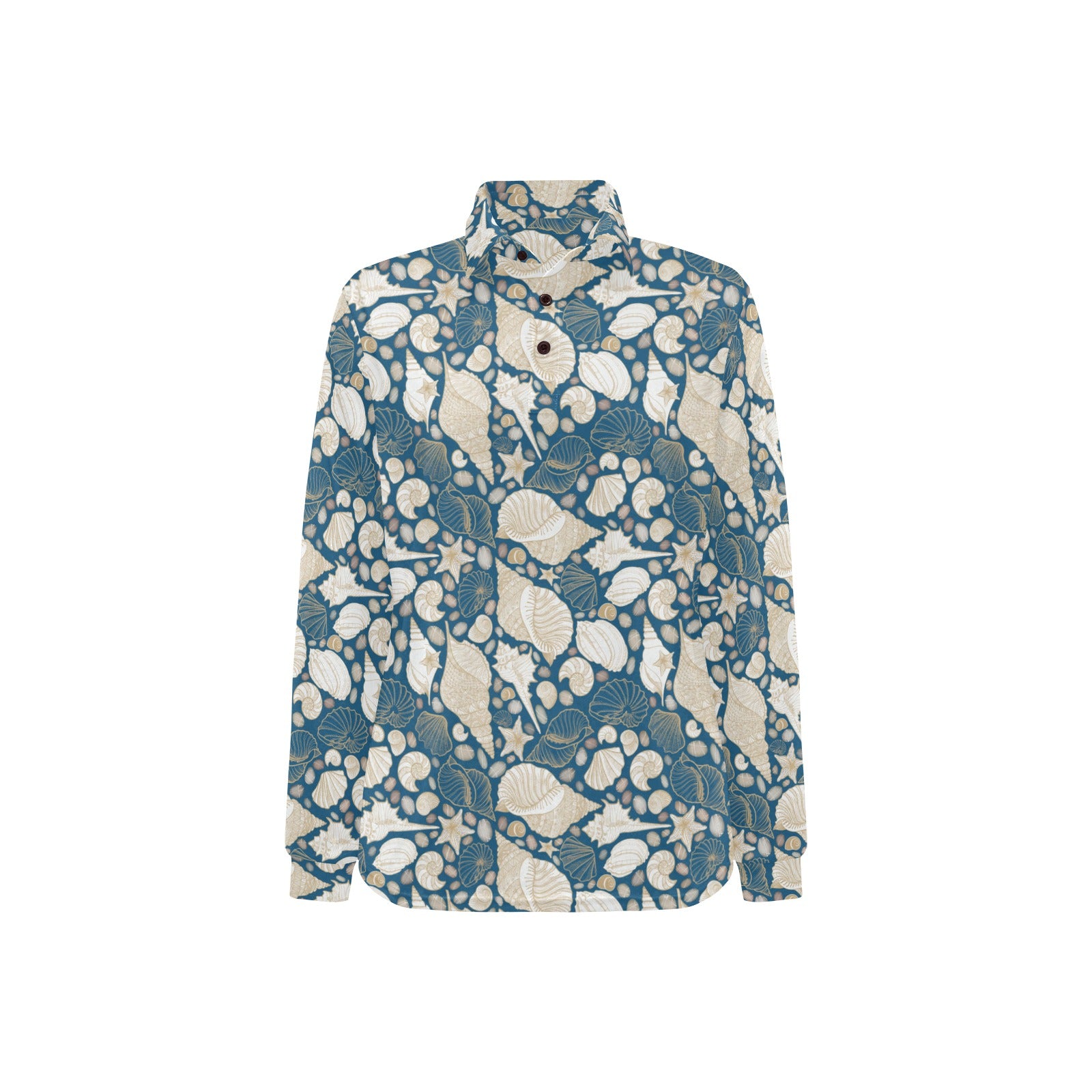 Sea turtle Polynesian Tribal design pattern Women's Long Sleeve Polo Shirt