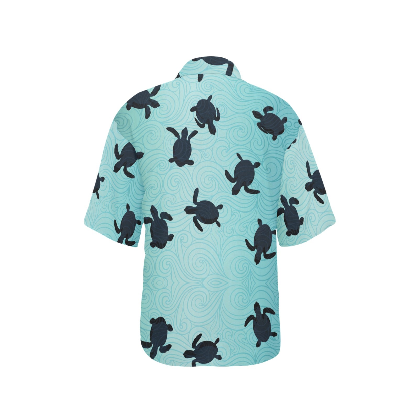 Sea turtle with blue ocean backgroud Women's All Over Print Hawaiian Shirt