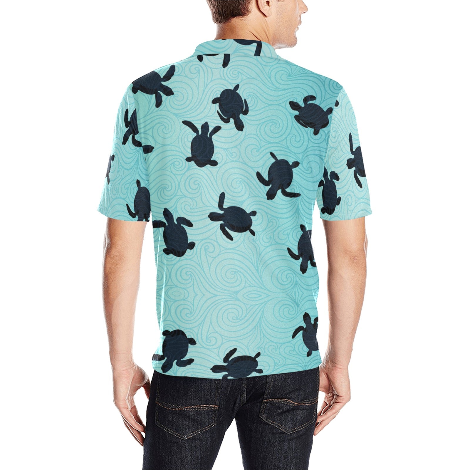 Sea turtle with blue ocean backgroud Men's All Over Print Polo Shirt