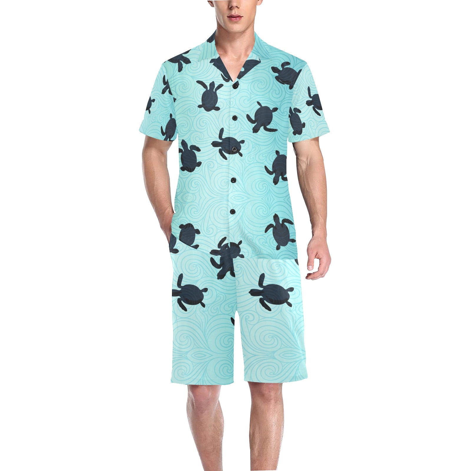 Sea turtle with blue ocean backgroud Men's V-Neck Short Pajama Set