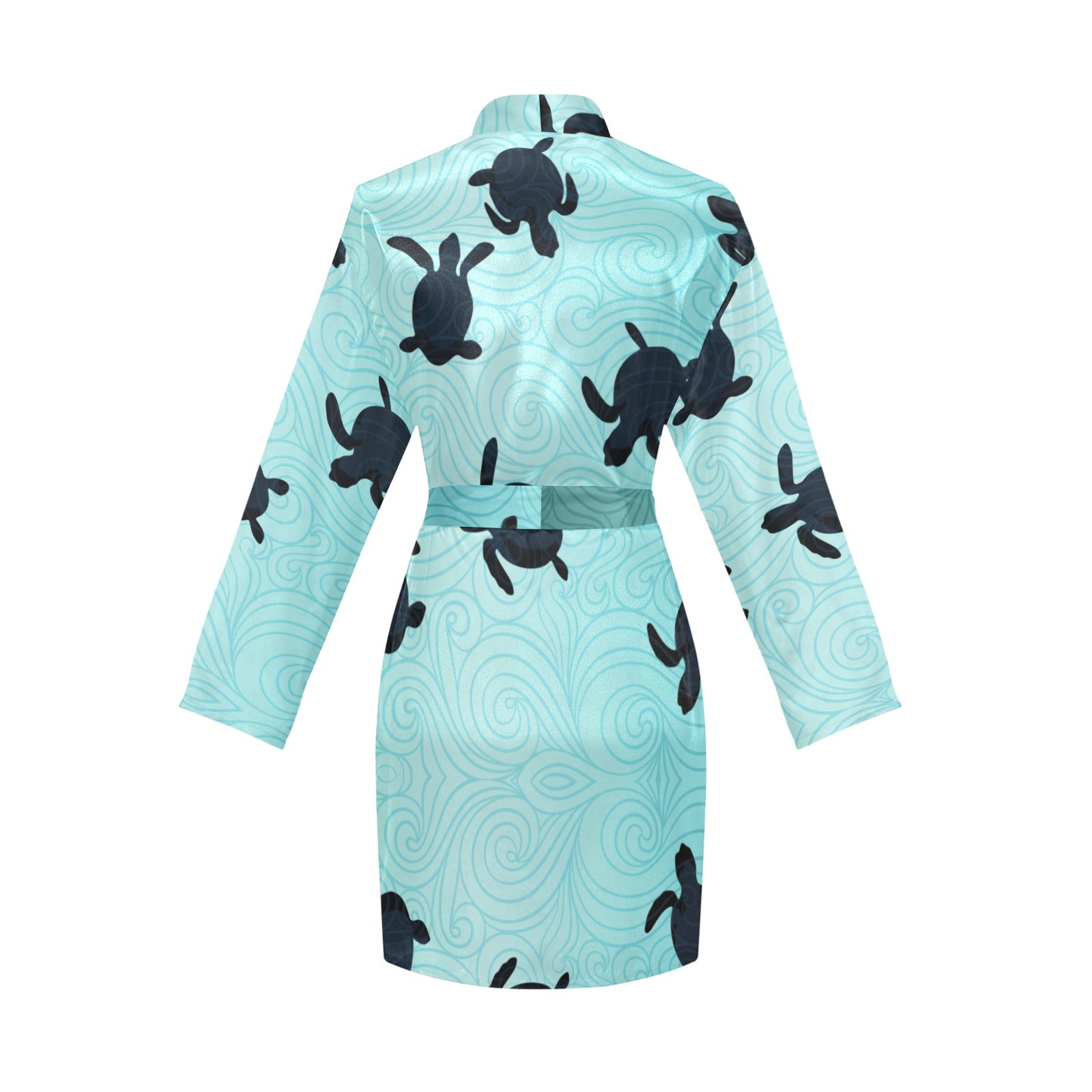 Sea turtle with blue ocean backgroud Women's Long Sleeve Belted Night Robe