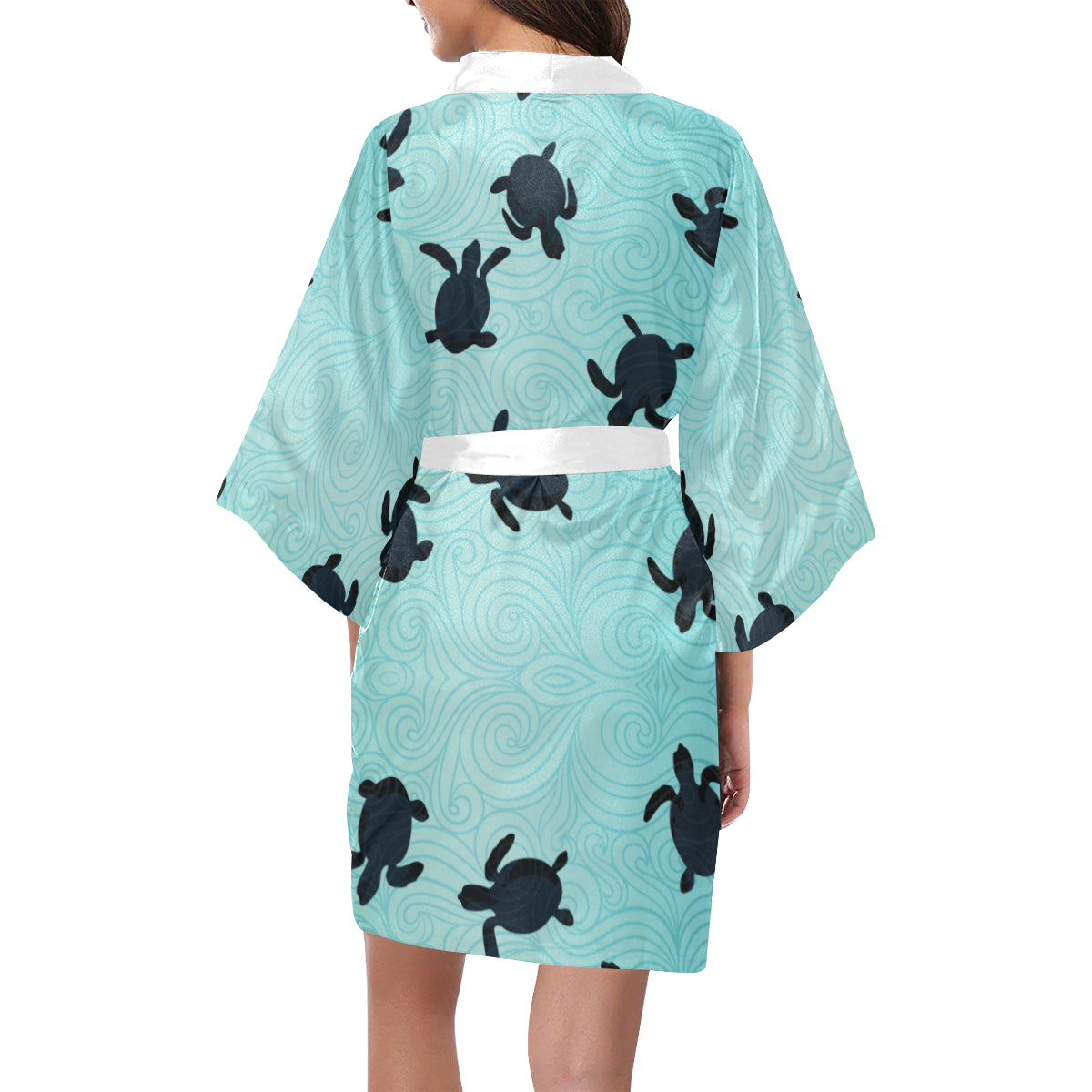 Sea turtle with blue ocean backgroud Women's Short Kimono Robe is a uniqued design and limited item. It made to order, hand printed, and sewn with love in our factory.
