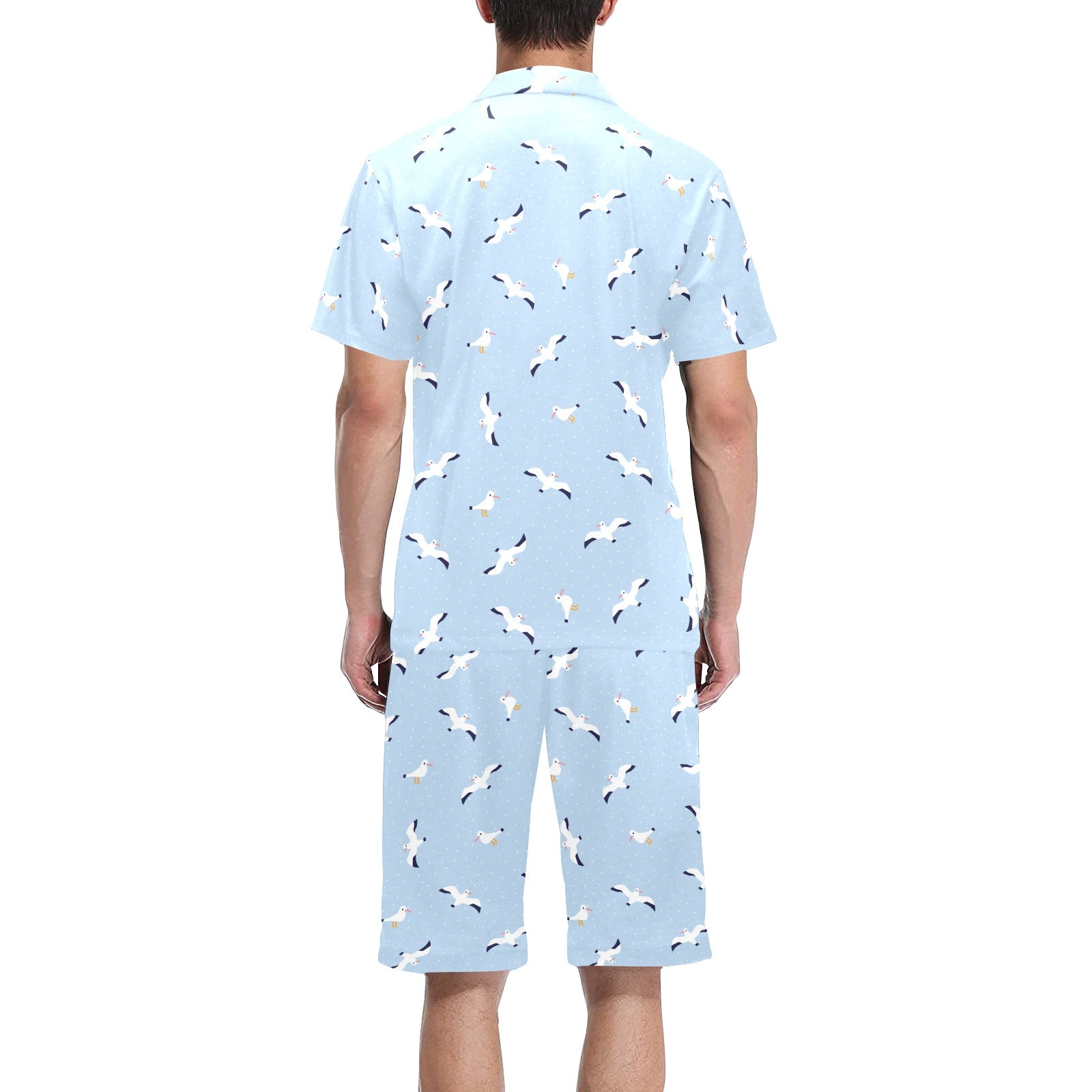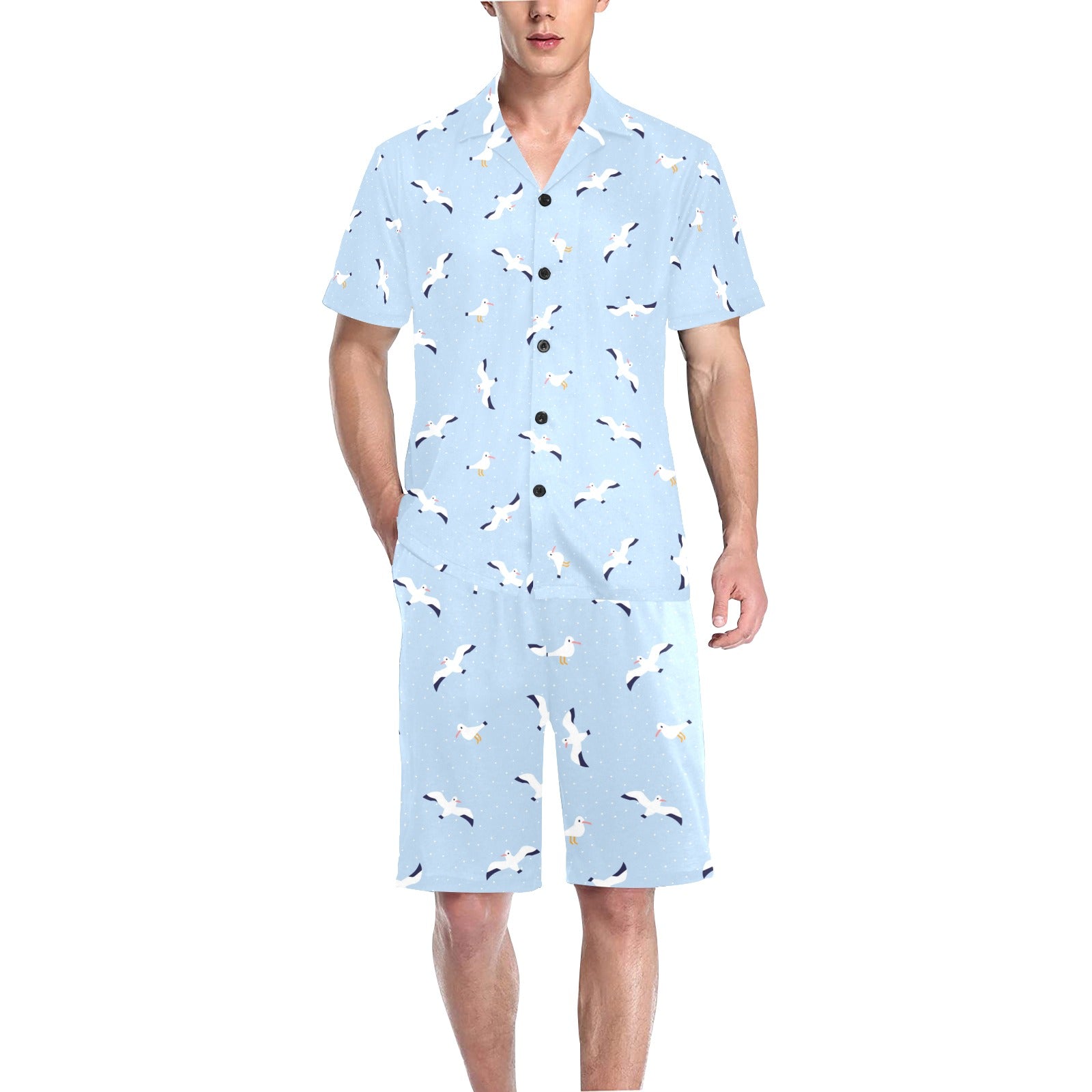 Seagull Pattern Print Design 02 Men's V-Neck Short Pajama Set
